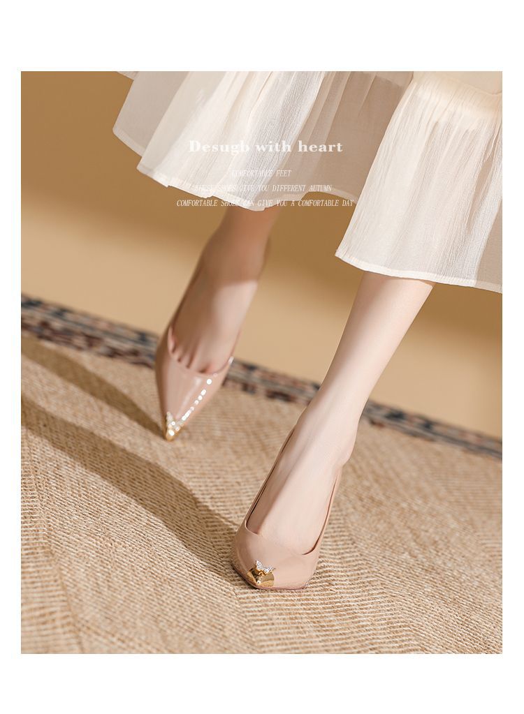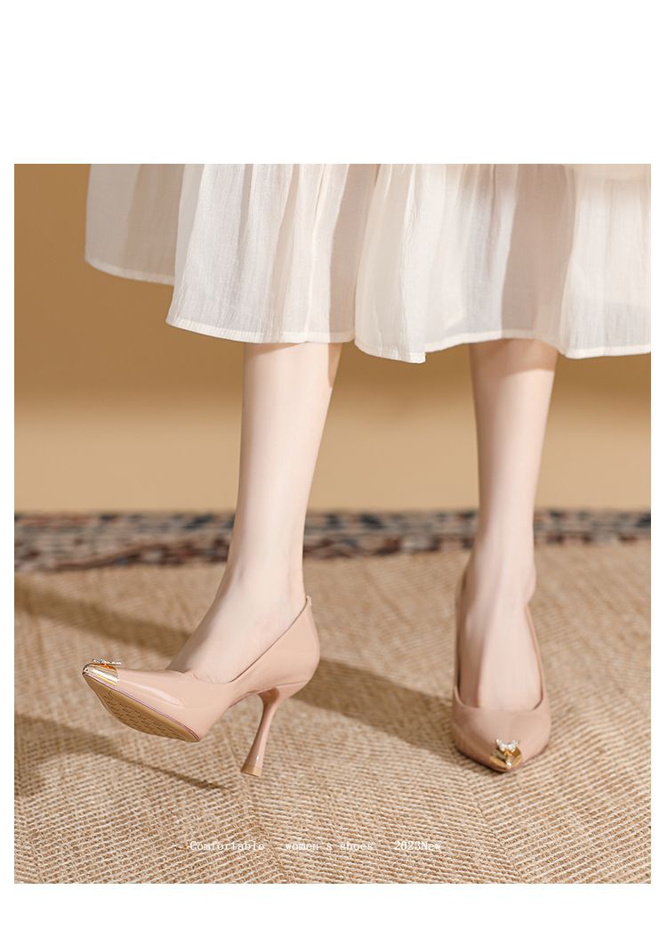 春夏尖头细跟高跟鞋女气质时装鞋一脚蹬时尚通勤鞋简约大气女单鞋 698263