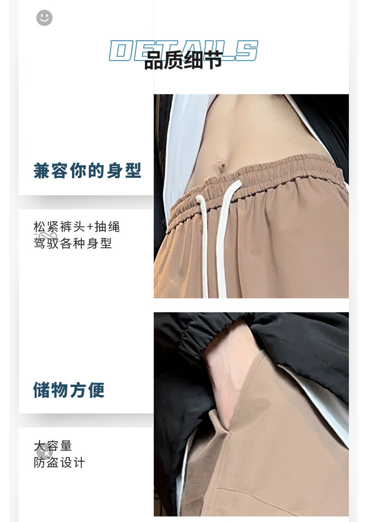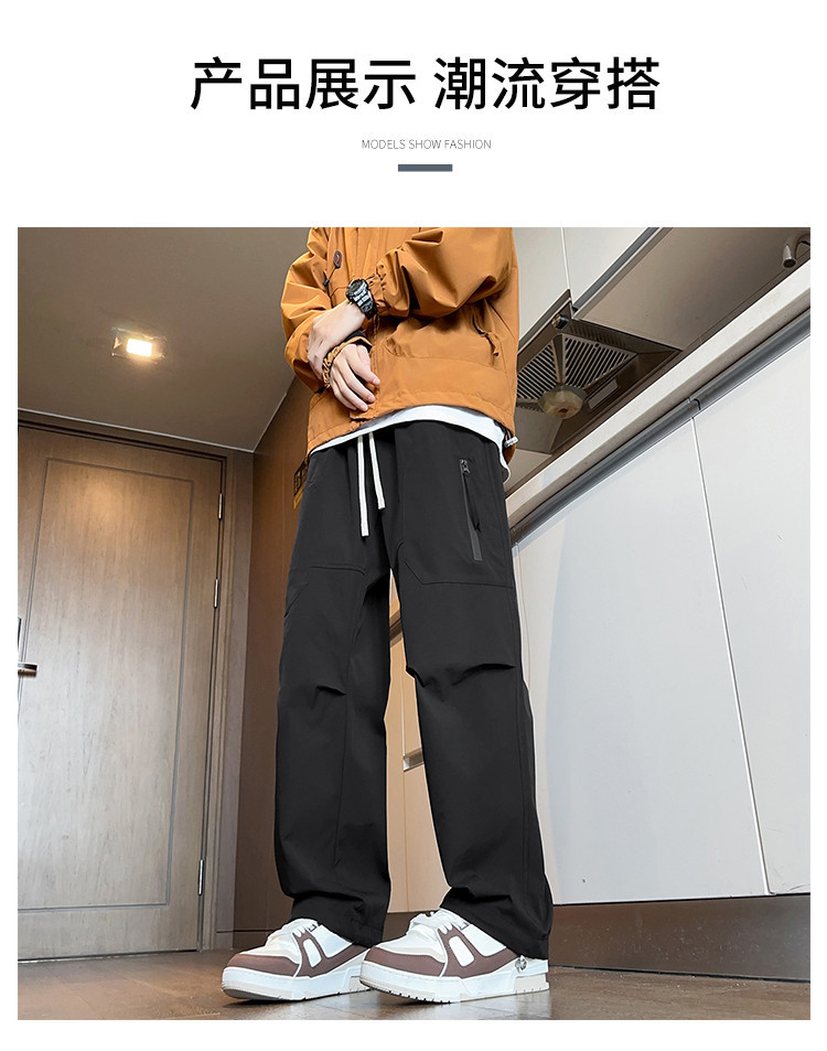 商品名称:户外运动工装裤男士春秋季潮流宽松阔腿裤子设计感百搭拉链直筒裤 247251