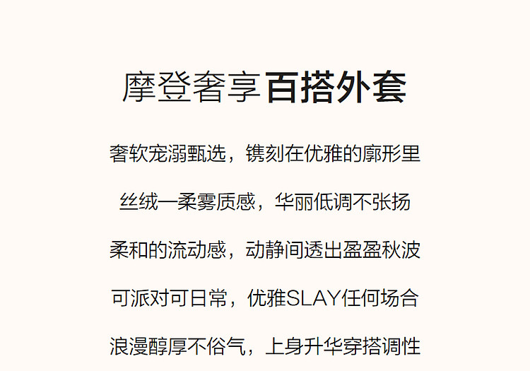 商品名称:【摩登奢享】春秋光泽典雅丝绒立领灯笼袖可调节抽绳下摆外套女 694465