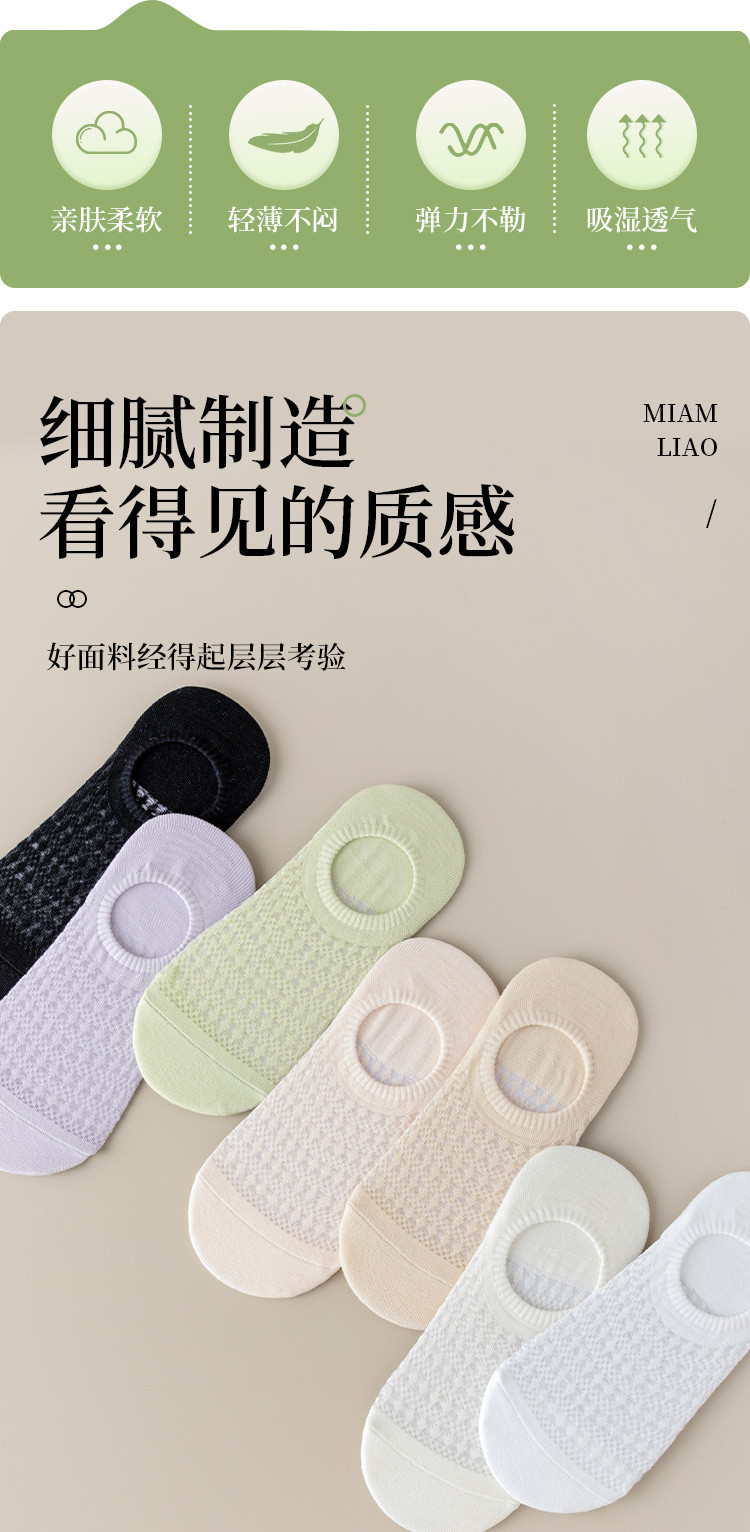 商品名称:【透气网眼隐形船袜】6双装女士船袜女隐形防滑浅口短袜女夏季薄 214667