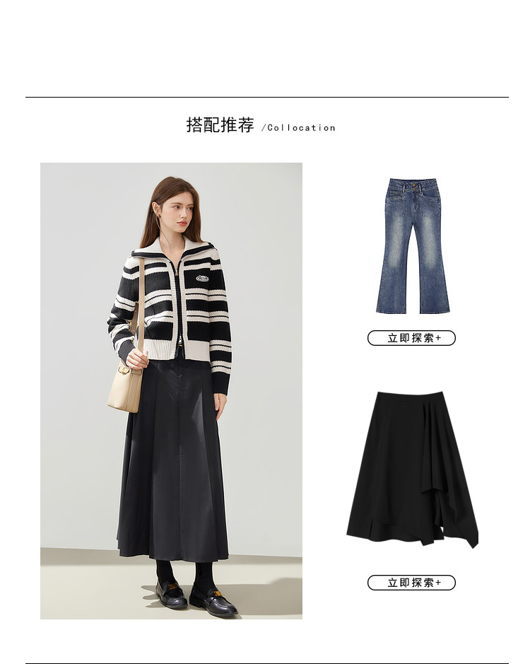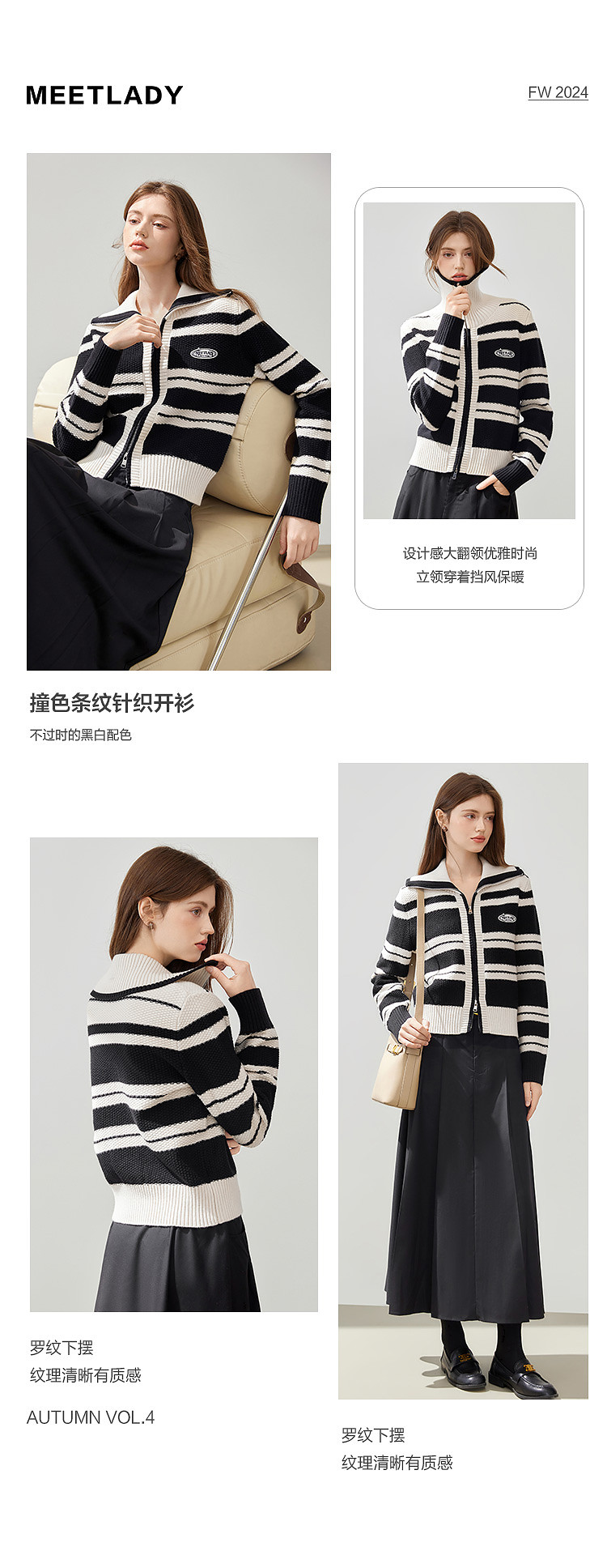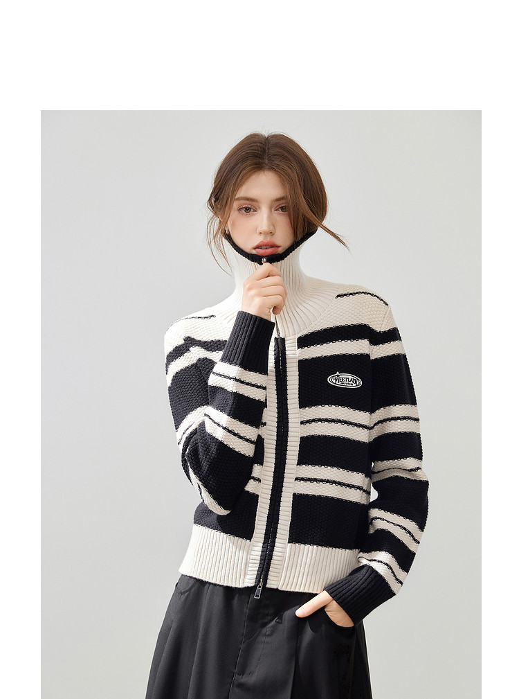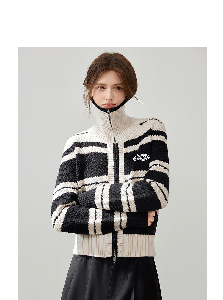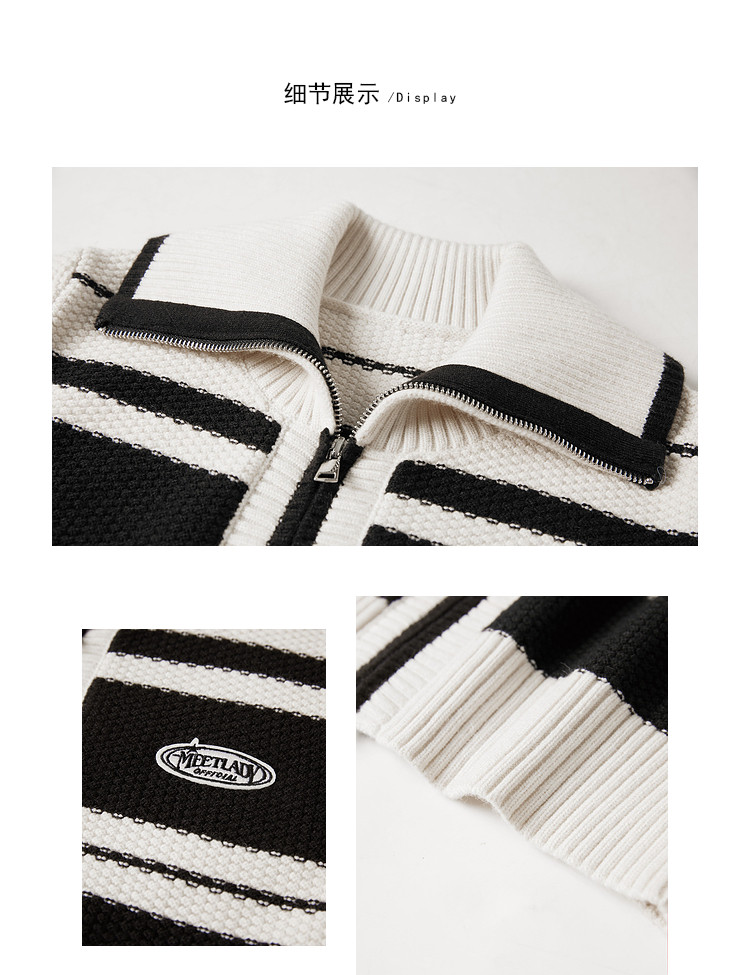 商品名称:【2024秋冬】简约百搭翻领条纹针织开衫女时尚休闲毛衣外套 383060
