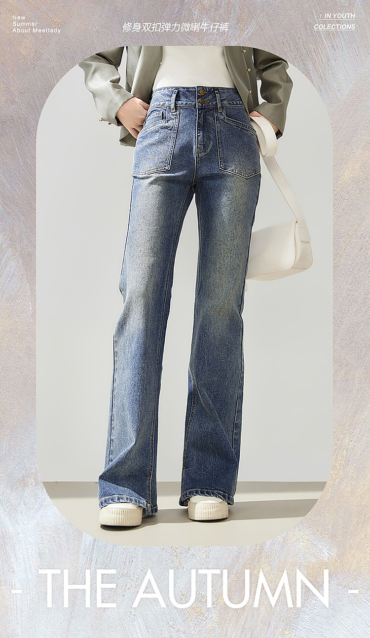 商品名称:【2024秋季】休闲弹力微喇牛仔裤女高腰显瘦裤子女四季可穿 481364