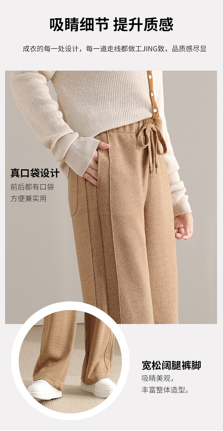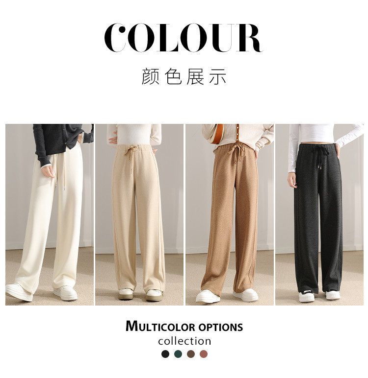 商品名称:【含羊毛】简约百搭纯色气质系带针织阔腿裤长裤子直筒裤休闲裤女 657427