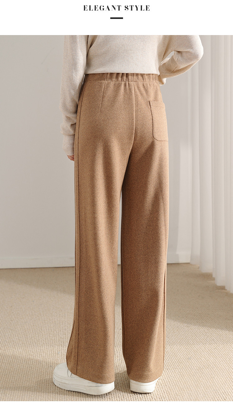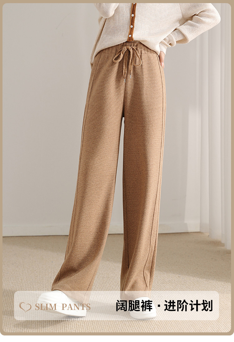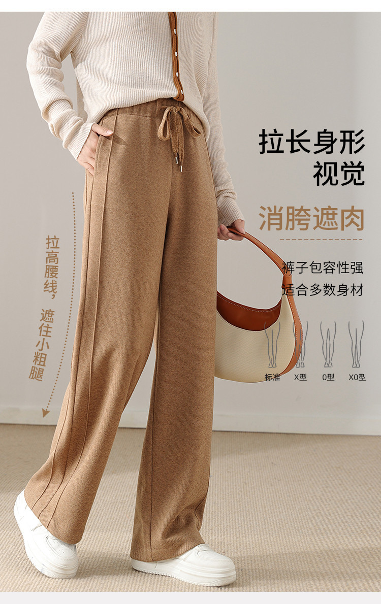 【含羊毛】简约百搭纯色气质系带针织阔腿裤长裤子直筒裤休闲裤女 657427