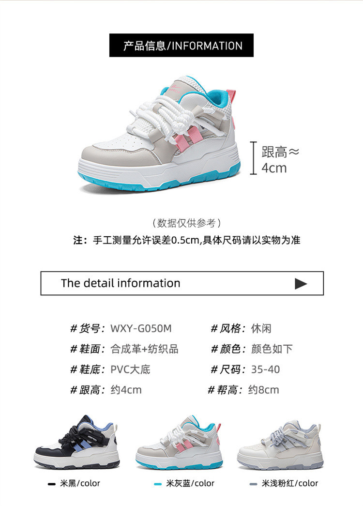 商品名称:板鞋女鞋春夏季爆款面包鞋女时尚高帮板鞋舒适百搭休闲厚底运动鞋 264064