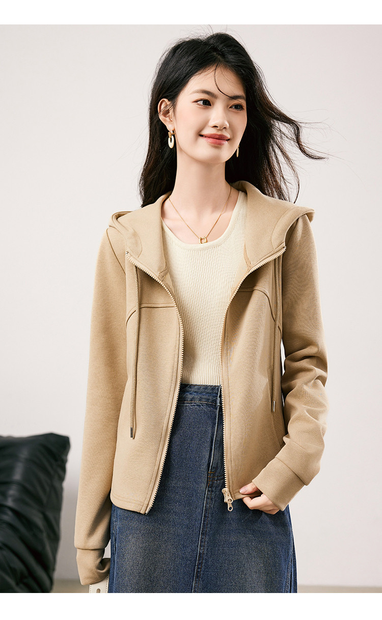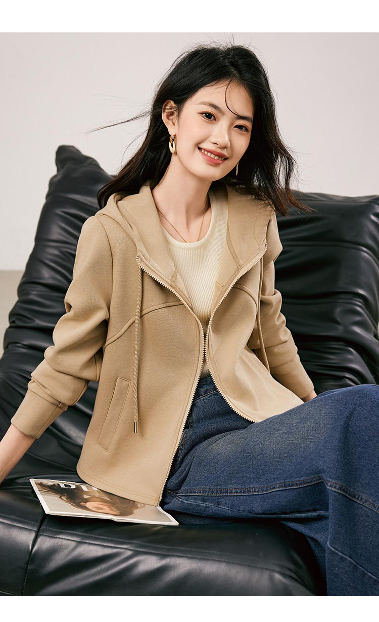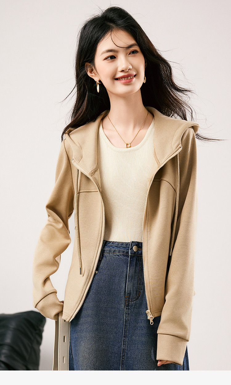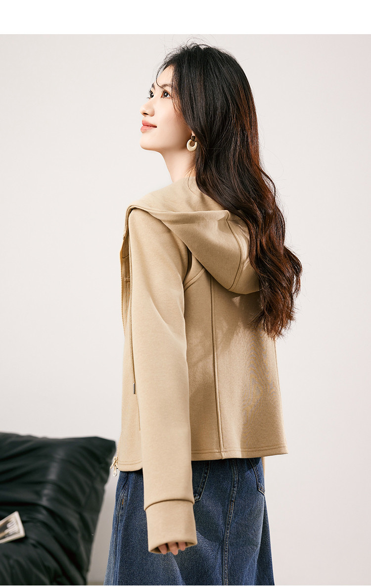 商品名称:休闲卫衣外套女2025春季新款时尚减龄百搭连帽短款长袖上衣女 954776