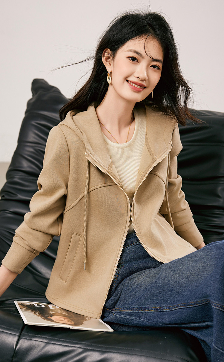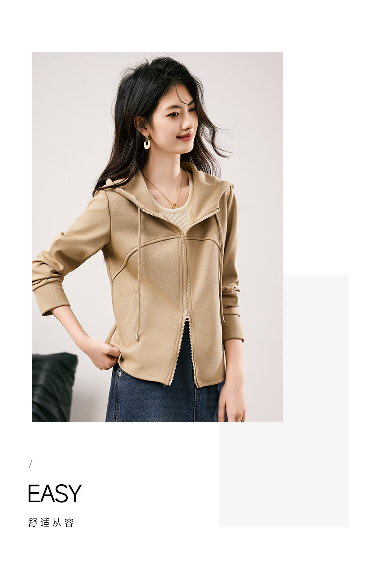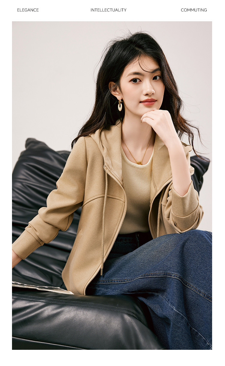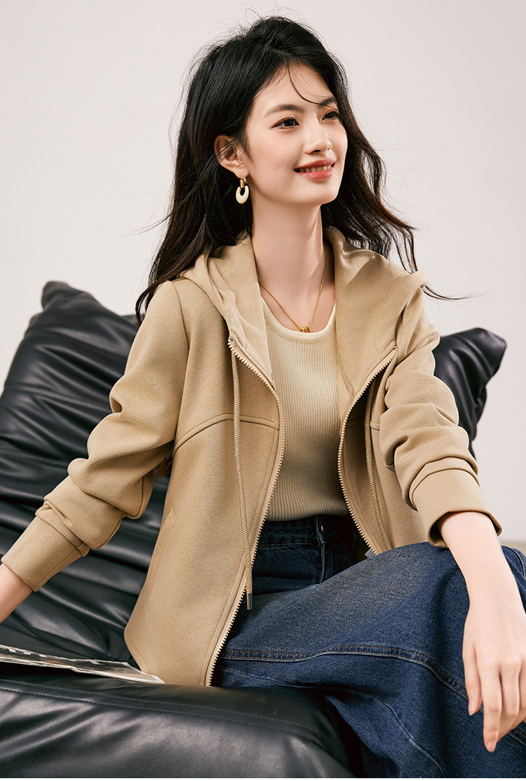 商品名称:休闲卫衣外套女2025春季新款时尚减龄百搭连帽短款长袖上衣女 954776