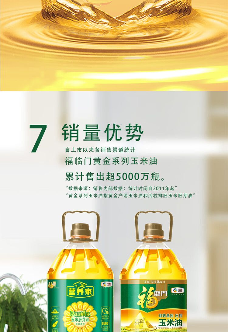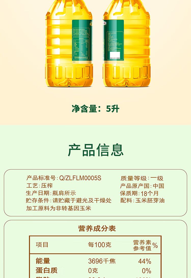 商品名称:福临门 营养家活力鲜胚玉米胚芽油 非转基因 一级压榨 5L (单位:桶)