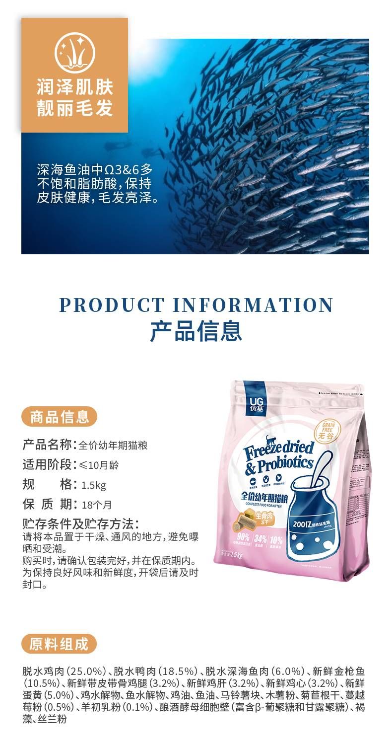 商品名称:优基 生骨肉蛋黄冻干 幼猫粮1.5kg/6kg