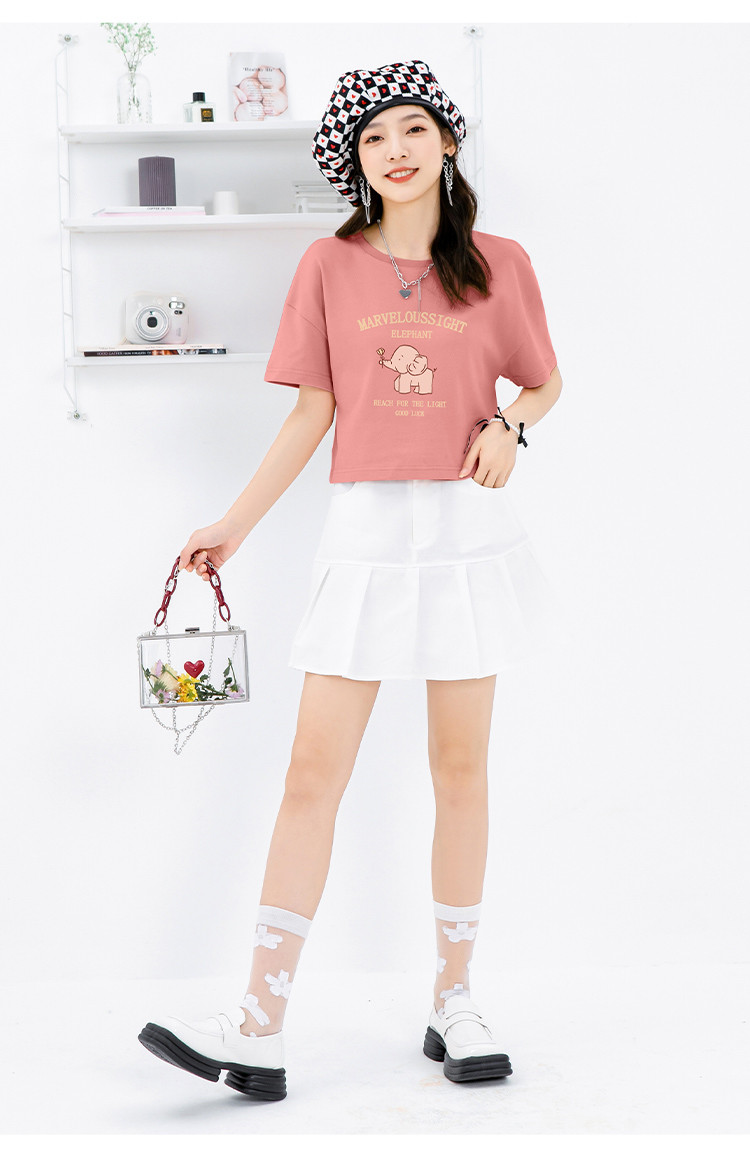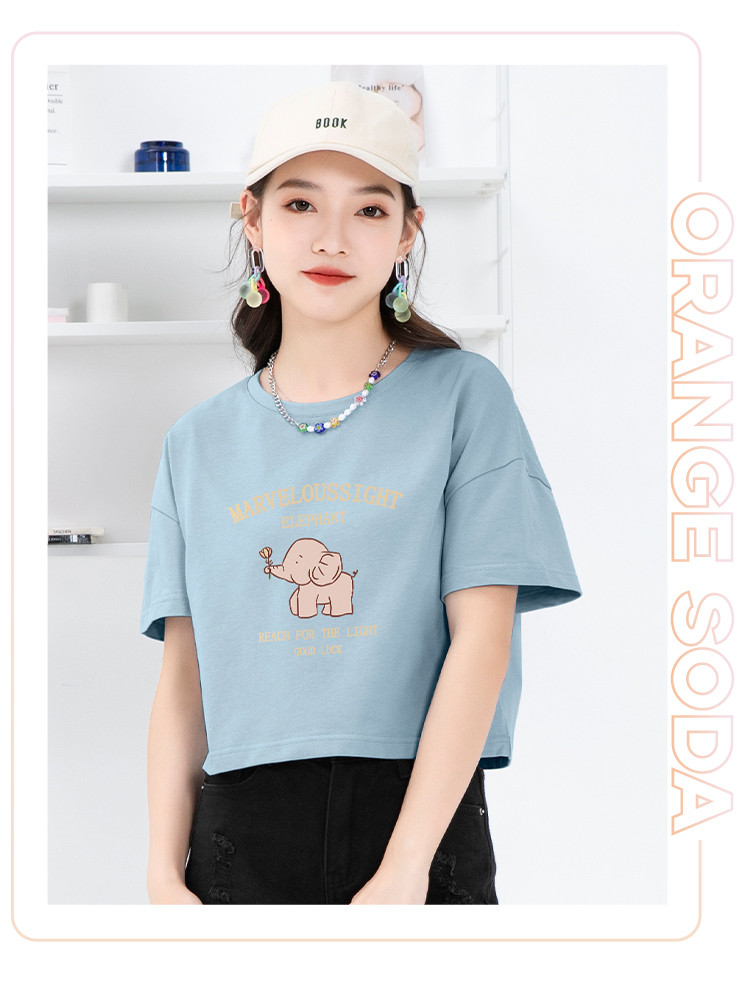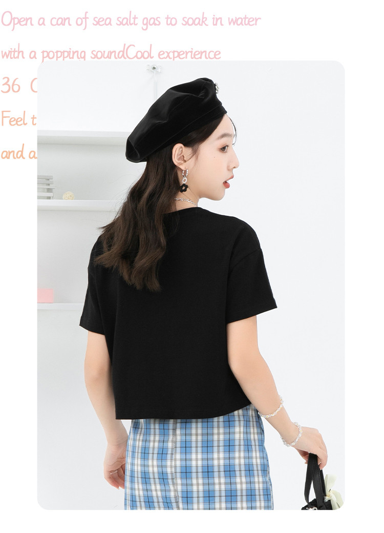 商品名称:【女装】短款短袖女式t恤纯棉透气时尚别致露肚脐上衣潮 572819