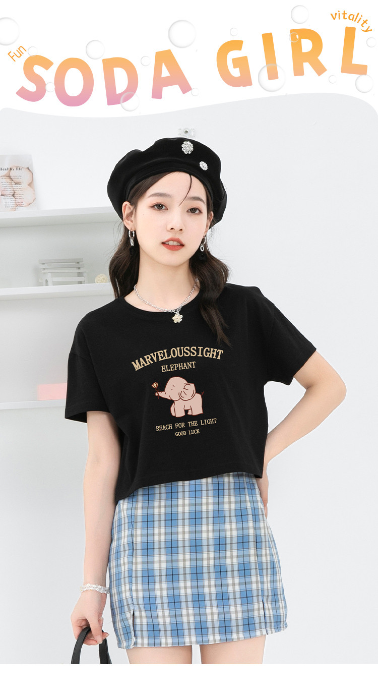 【女装】短款短袖女式t恤纯棉透气时尚别致露肚脐上衣潮 572819