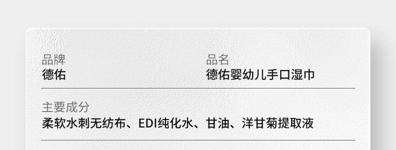 商品名称:德佑(Deeyeo)手口湿巾组合装(80抽*3包+10抽*10包)