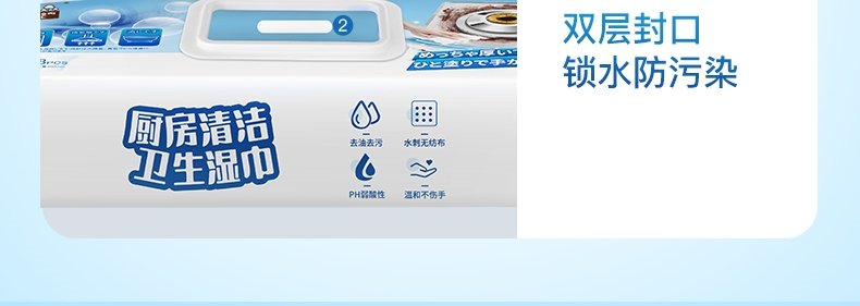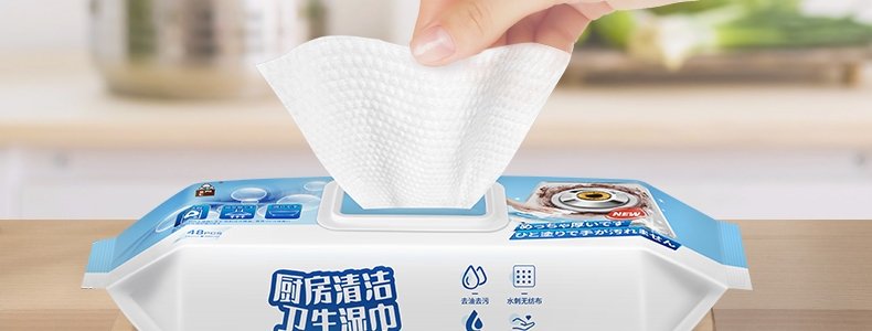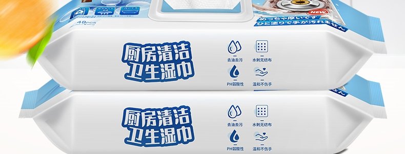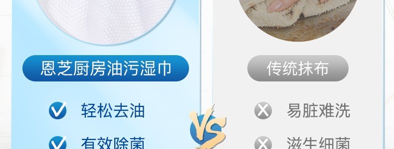 商品名称:恩芝 厨房油污湿巾 240mm×200mm*48片/包