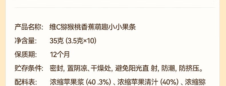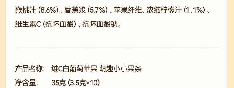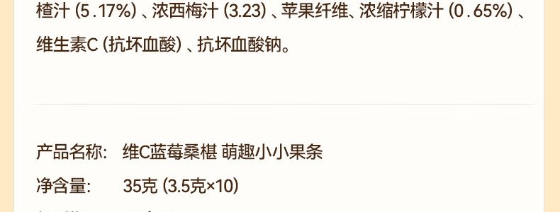 商品名称:秋田满满 维C西梅山楂萌趣小小果条 35g 新老包装随机