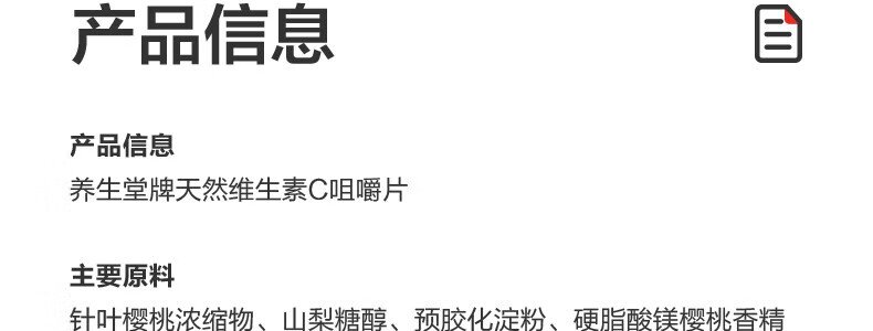 商品名称:养生堂 天然维生素C咀嚼片 0.85g*130片