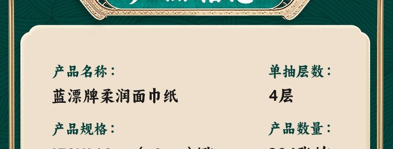 商品名称:蓝漂(Lam pure)白色抽纸 8包/提(悦色花园)