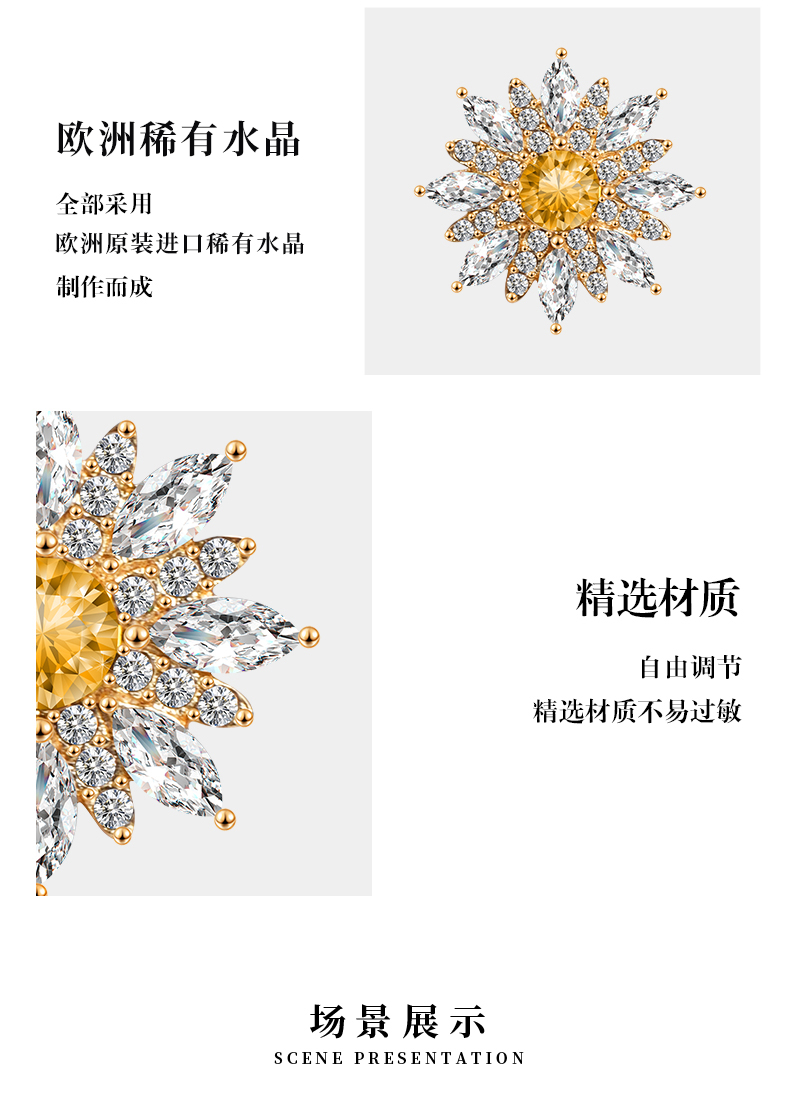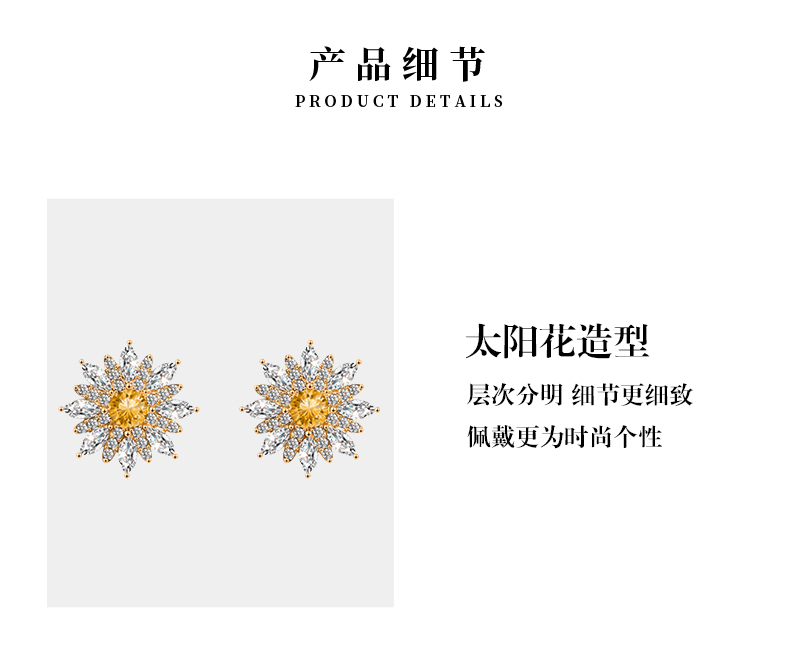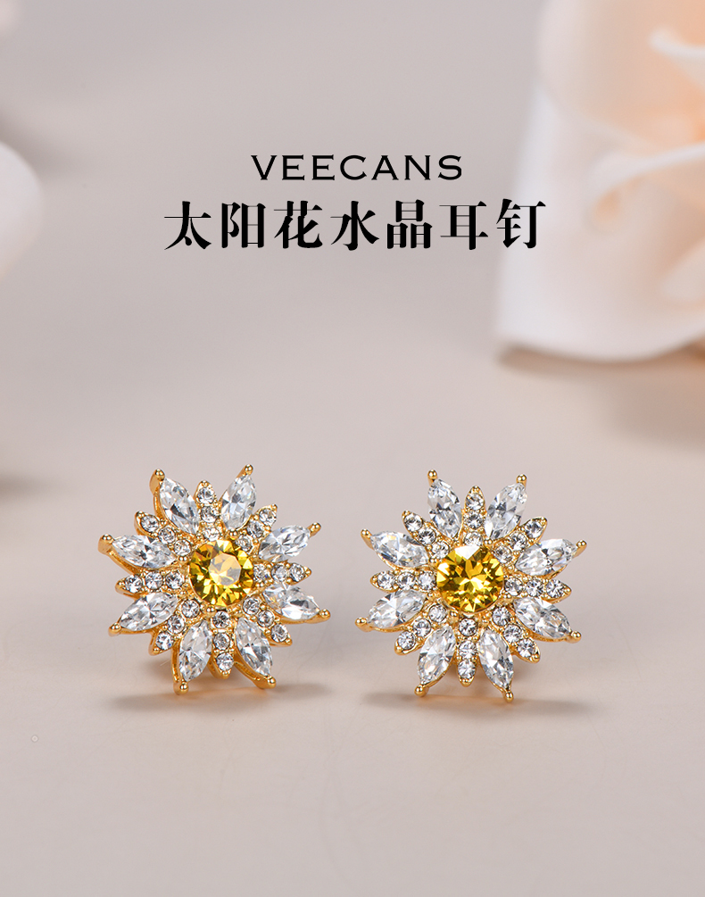 商品名称:veecans金色太阳花朵耳钉轻奢闪亮白小众设计夏季新款女送礼物