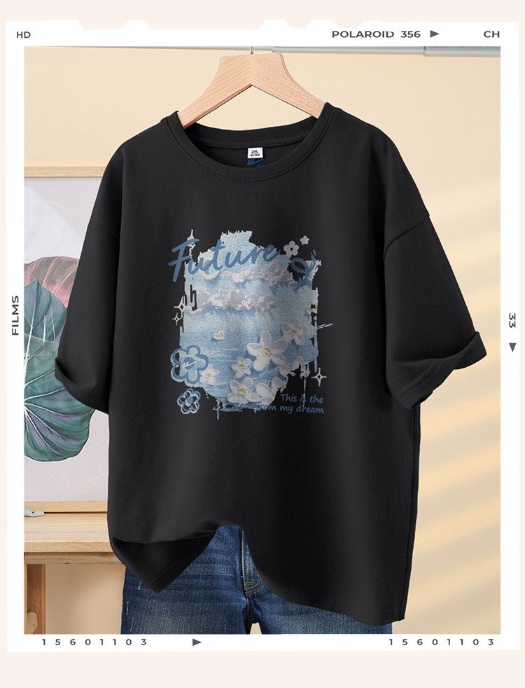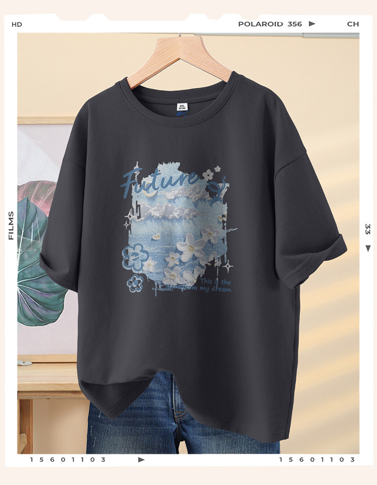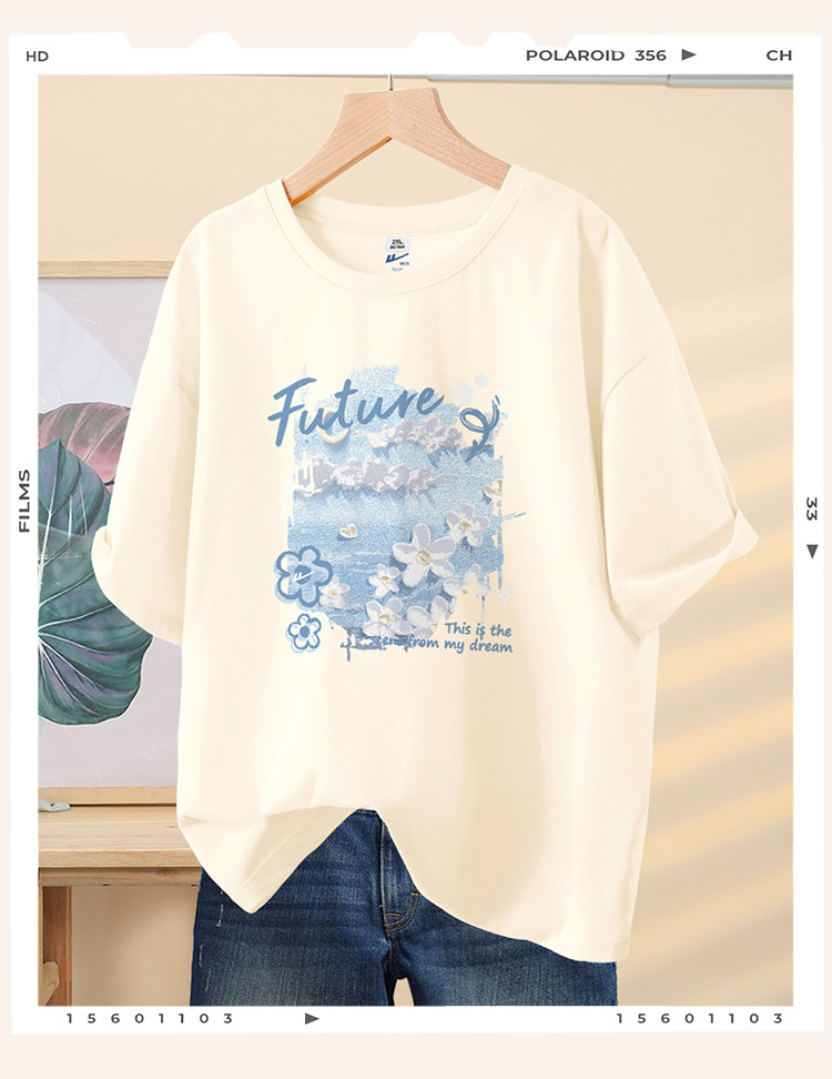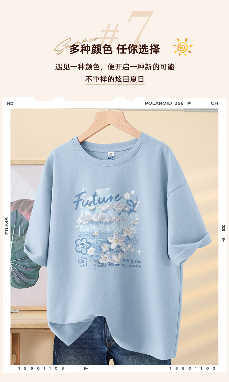 【女装】夏季女式休闲T恤宽松纯棉透气女装短袖大码胖妹妹 682323