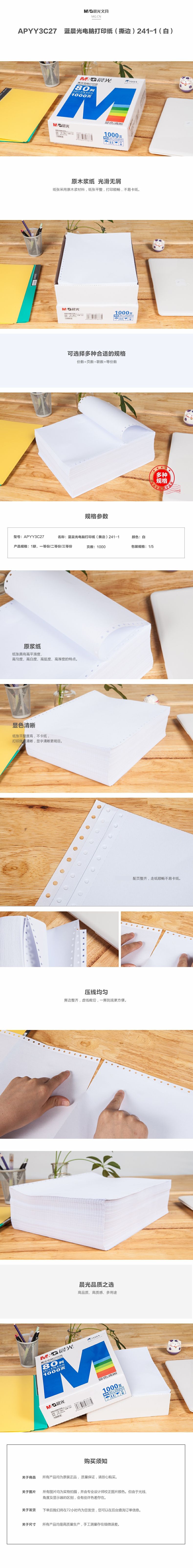 商品名称:晨光 打印纸蓝(撕边)241-1(白)APYY3C27A