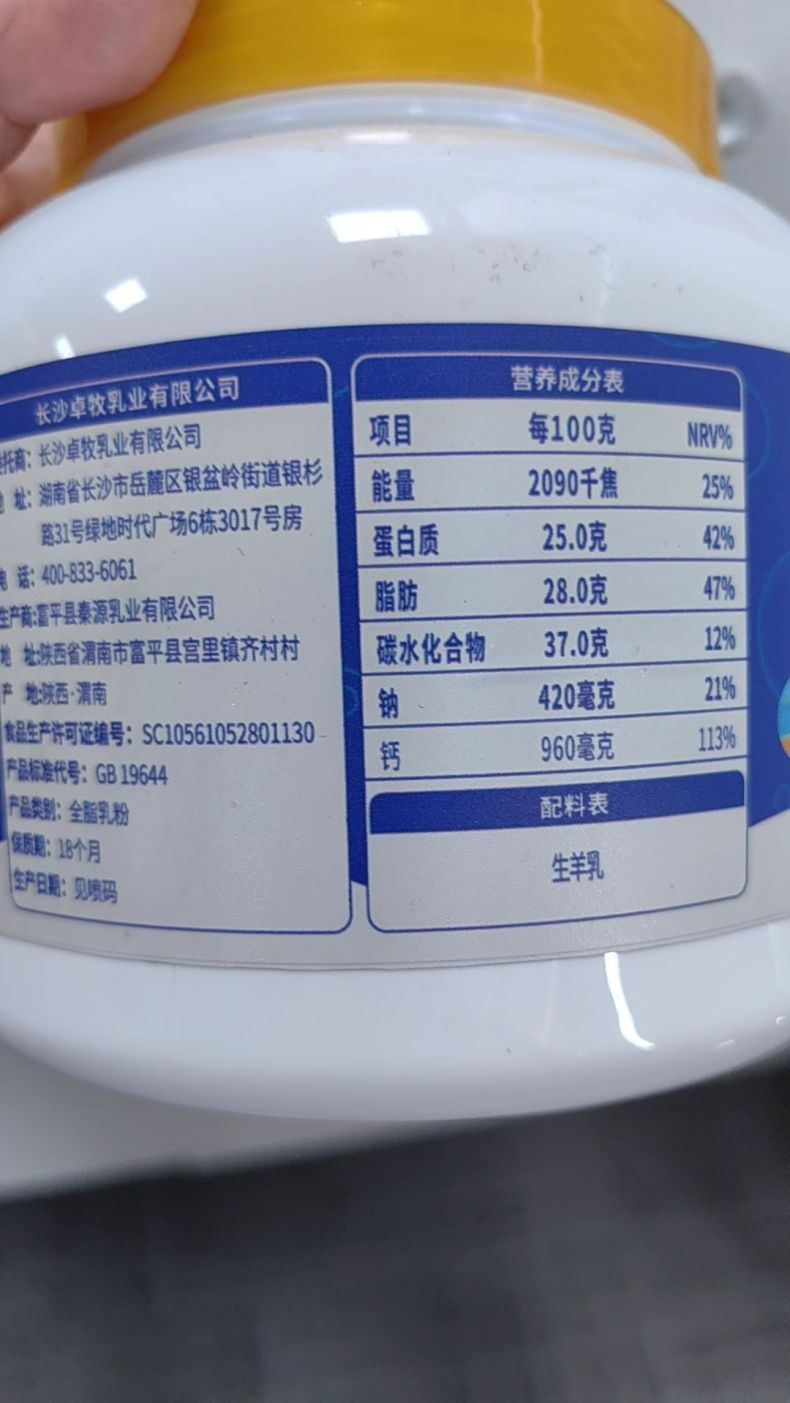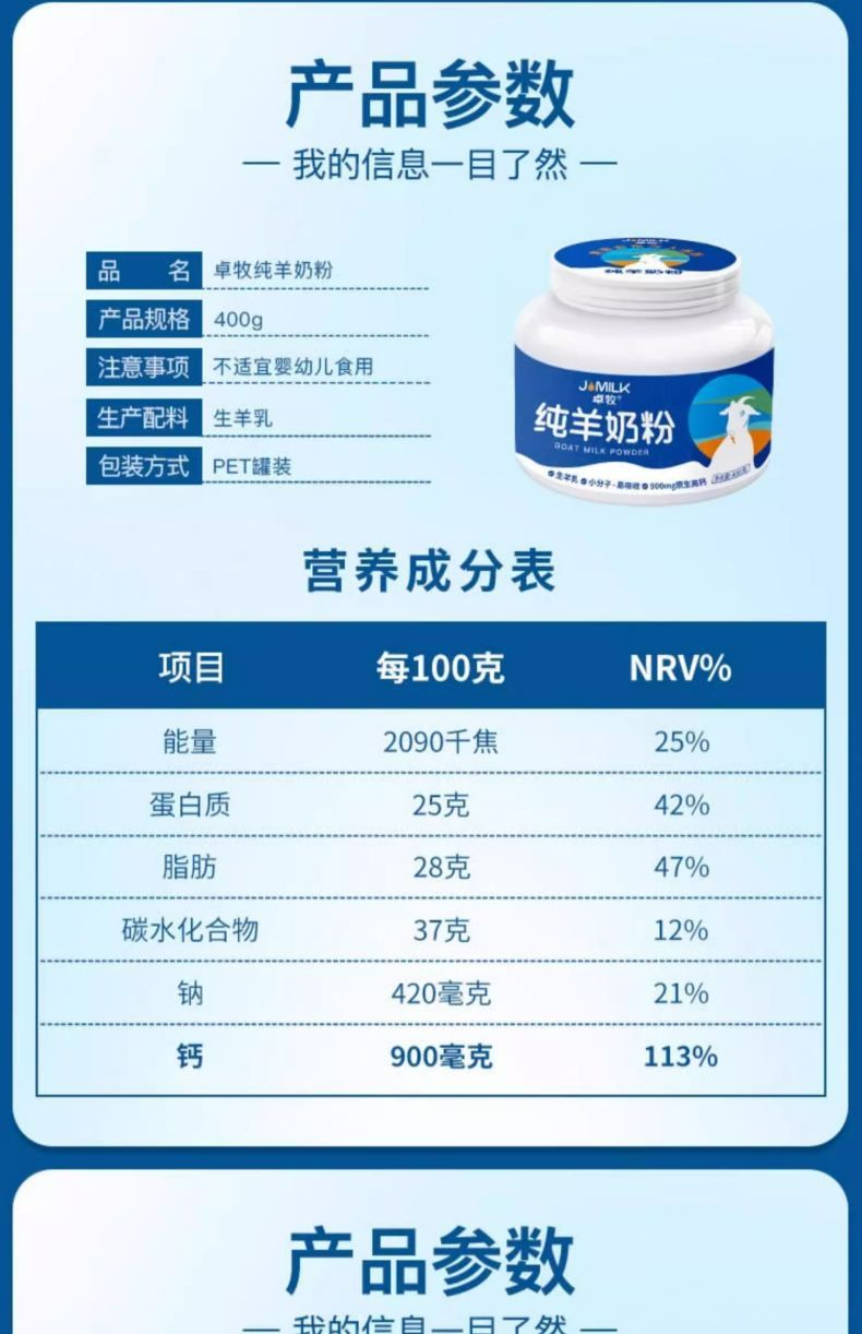商品名称:卓牧纯羊奶粉小分子成人中老年女士青年全家羊奶粉高钙无蔗糖