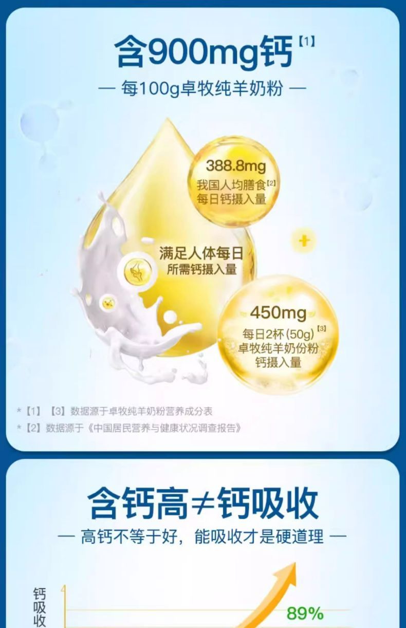 卓牧纯羊奶粉小分子成人中老年女士青年全家羊奶粉高钙无蔗糖