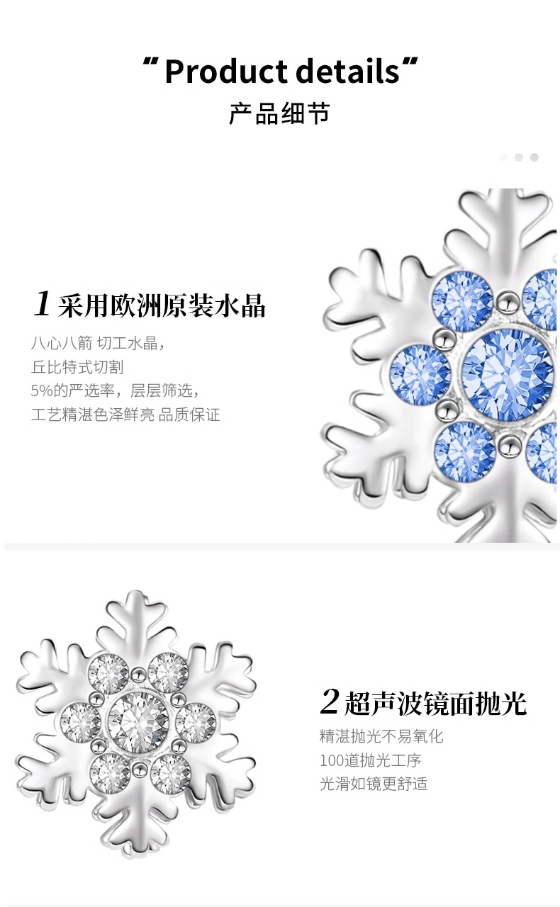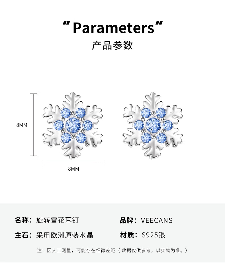 商品名称:veecans雪花耳钉女2023年新款纯银耳饰小众设计感高级精致轻奢