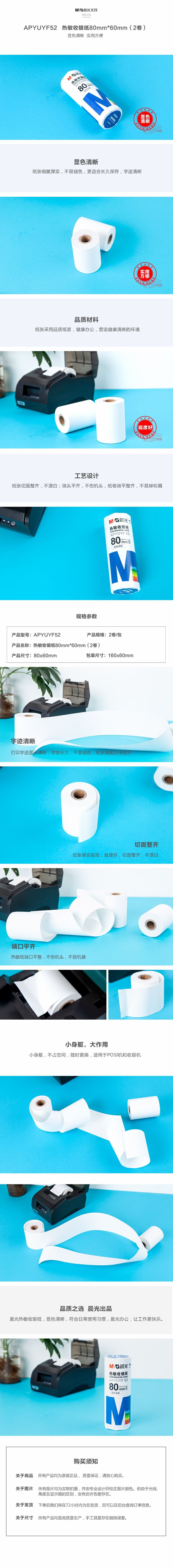 商品名称:晨光 热敏收银纸80MM*60MM 2卷/筒*6筒-APYUYF52