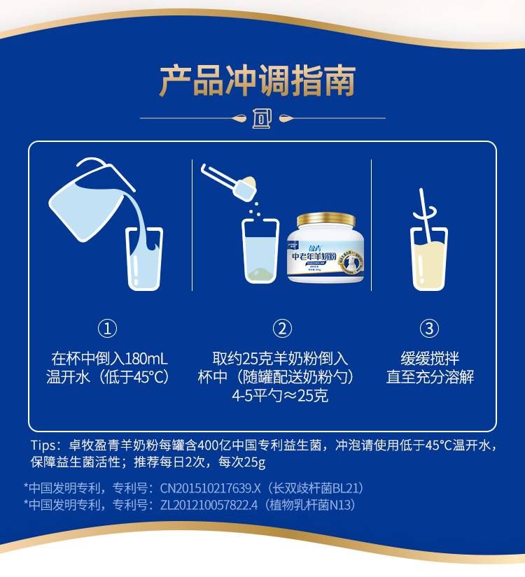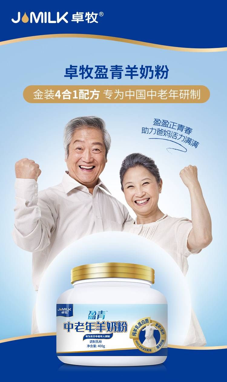 商品名称:卓牧(JOMILK)盈青中老年羊奶粉 富含益生菌 400g/罐