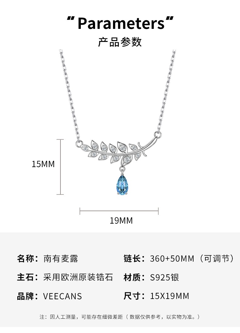 商品名称:veecans南有麦露项链女925银饰轻奢原创锁骨链情人节送女友礼物
