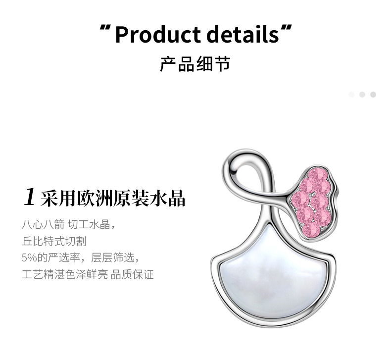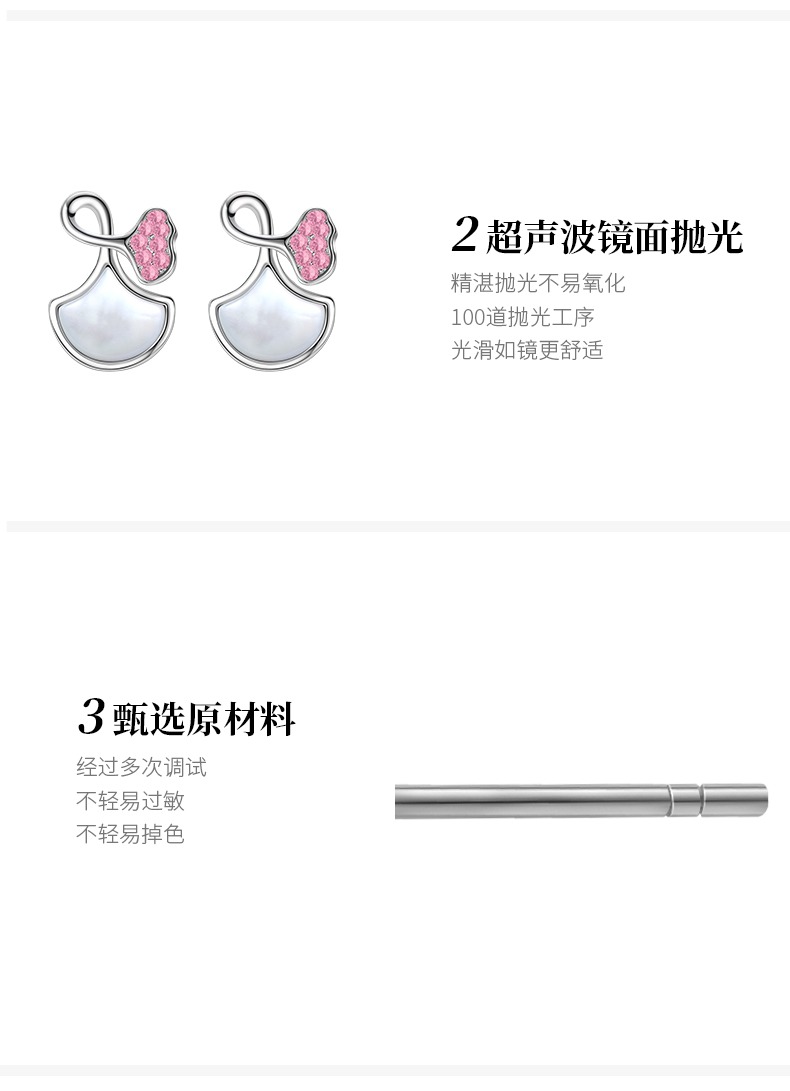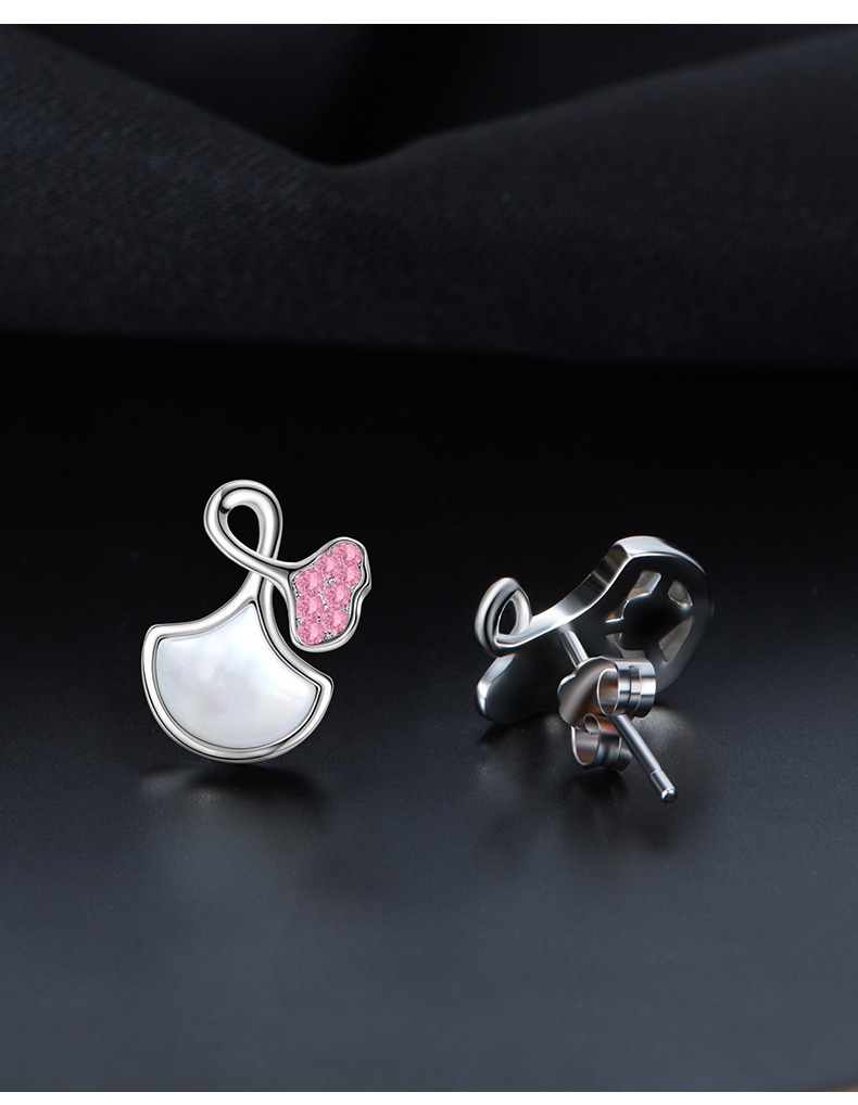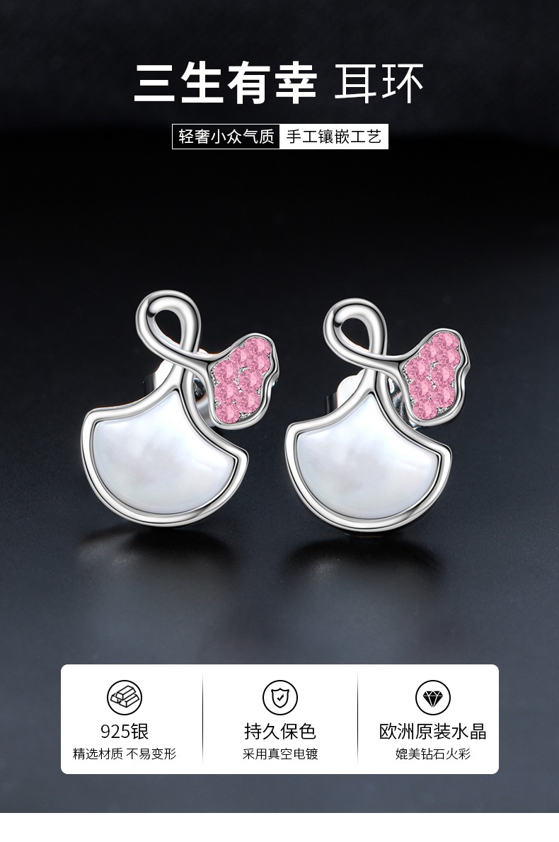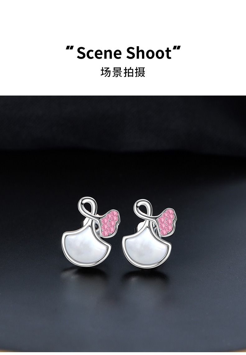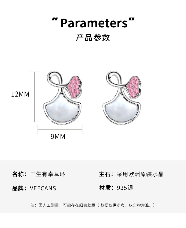商品名称:veecans白贝母银杏扇形耳钉2023年镶嵌水晶原创设计520送女友耳饰