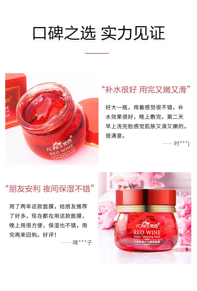 商品名称:Fonce/梵西红酒多酚补水睡眠面膜100g/瓶