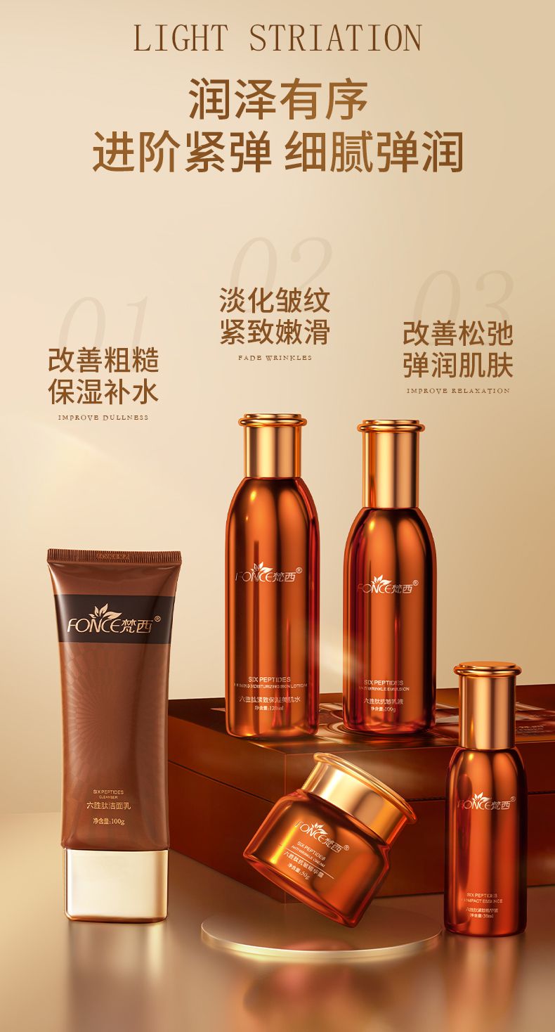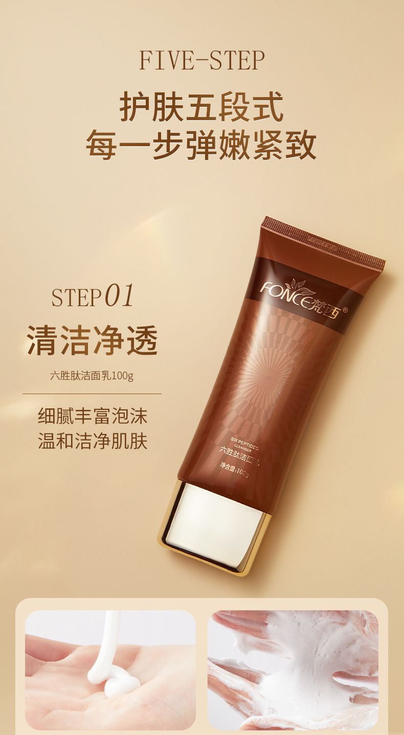 商品名称:Fonce/梵西驻颜紧致套装(洁面乳+水+乳+精华+面霜)