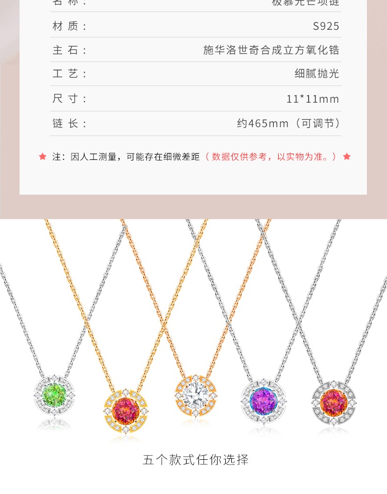 商品名称:veecans点钟纪念款锆石项链女夏时尚轻奢小众设计纯银锁骨链礼物