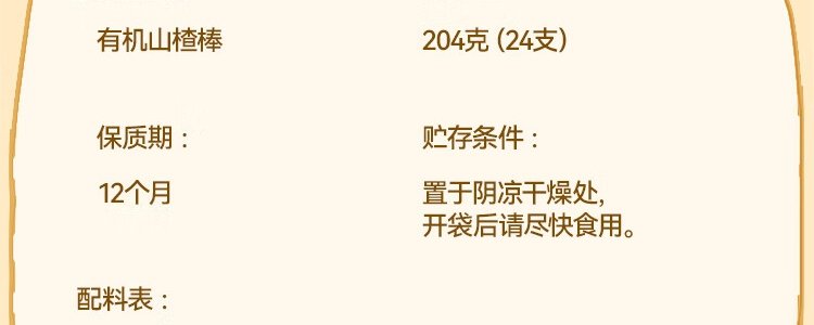 商品名称:秋田满满 有机山楂棒 204g(24支装)