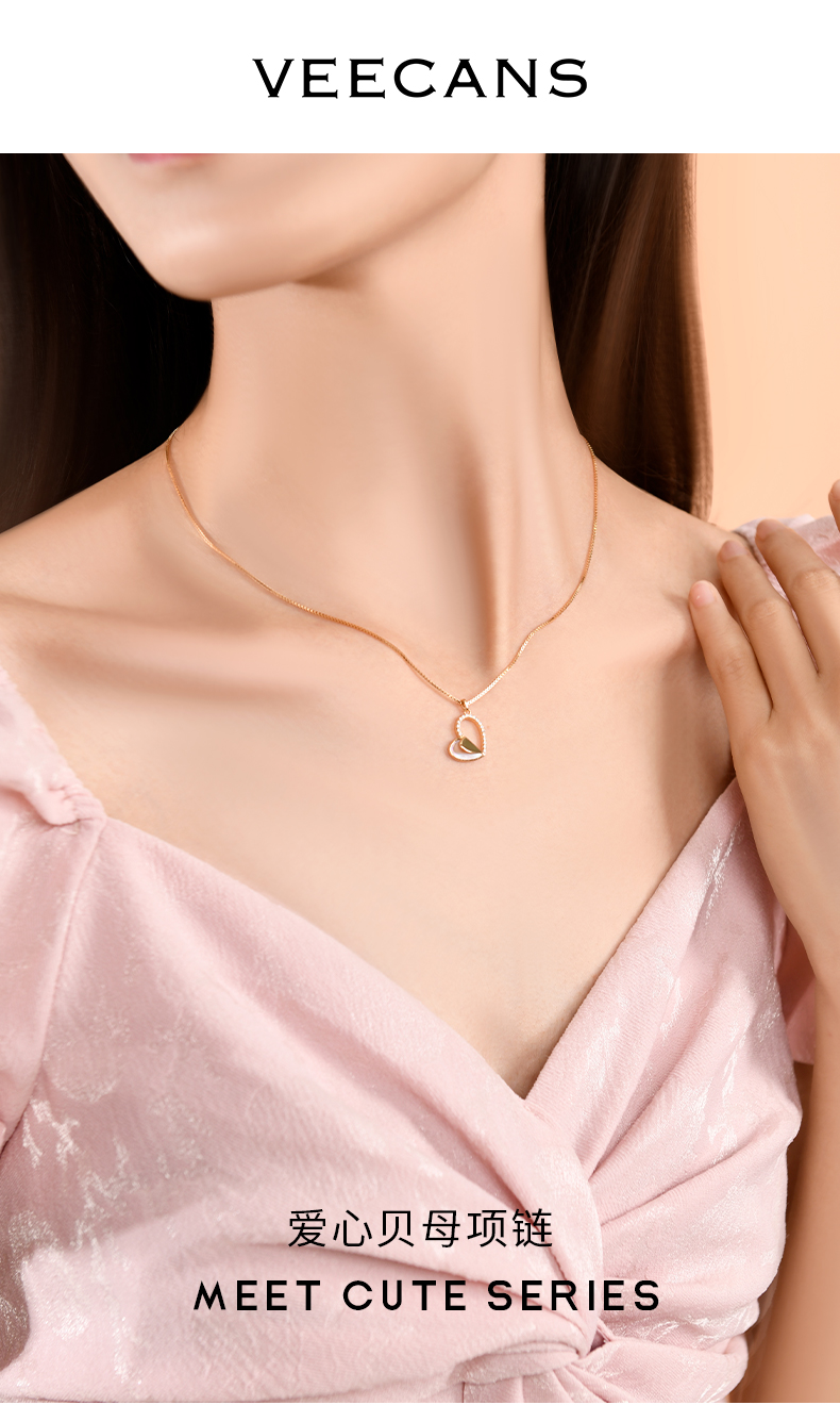 商品名称:veecansMeet Cute系列-爱心贝母项链(镀香槟金)轻奢ins风格高级感锁骨链送礼物