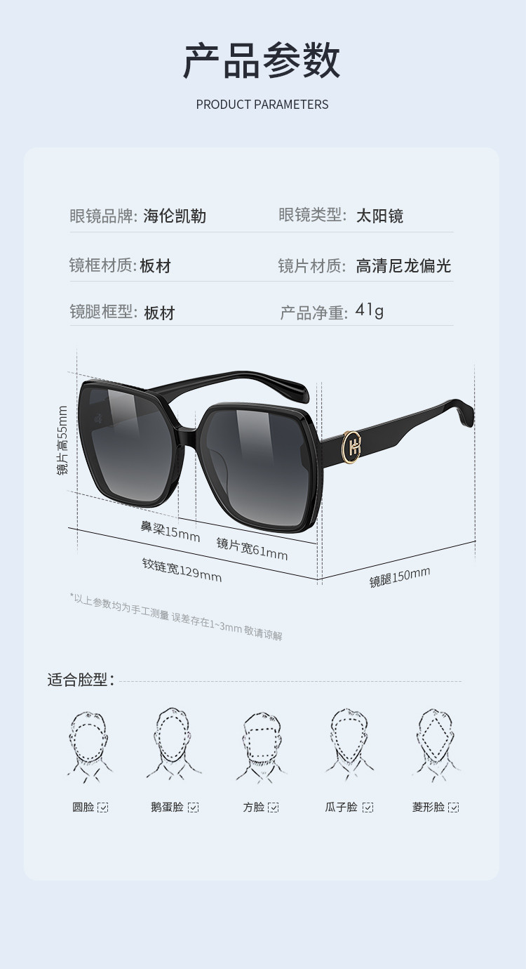 商品名称:海伦凯勒女士墨镜太阳镜女防紫外线高级感修颜防晒墨镜眼镜 798107