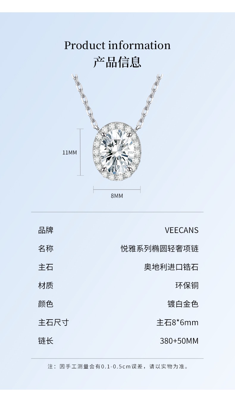 商品名称:veecans悦雅系列椭圆轻奢项链闪亮白小众设计夏季新款女送礼物