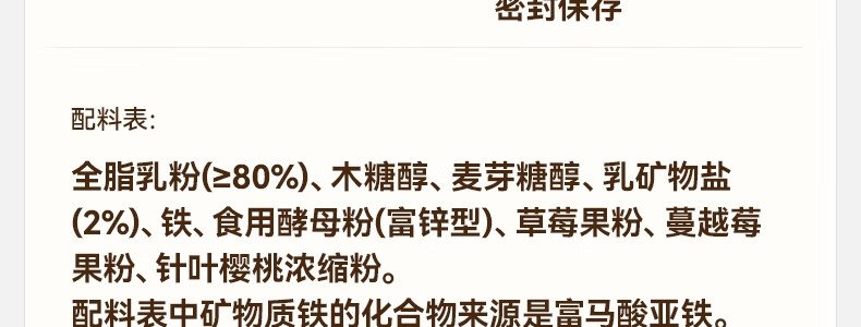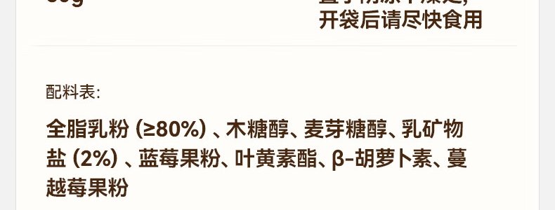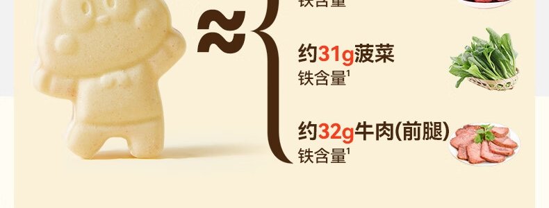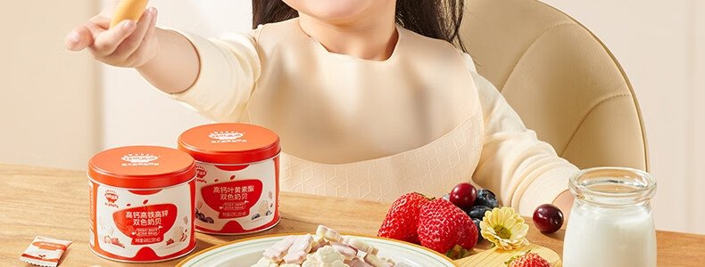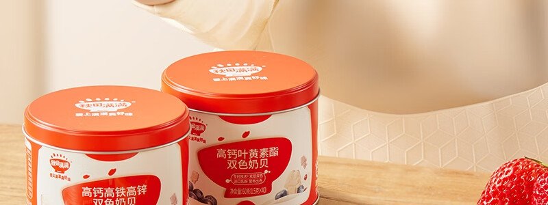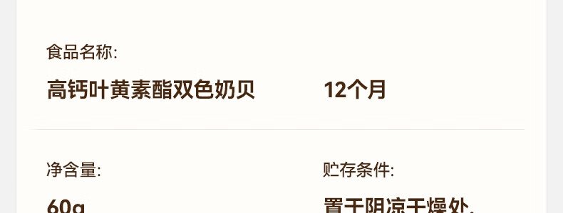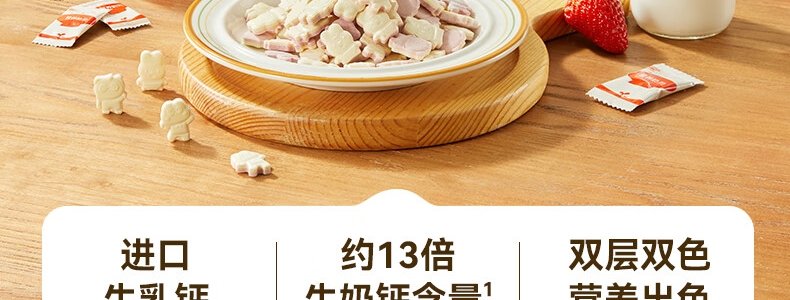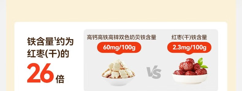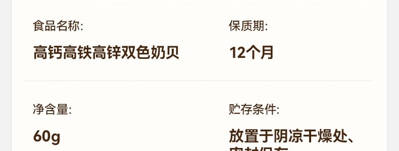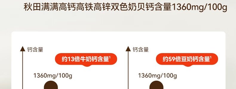 商品名称:秋田满满 高钙高铁高锌双色奶贝 60g