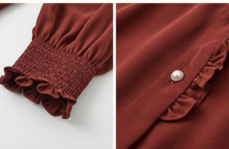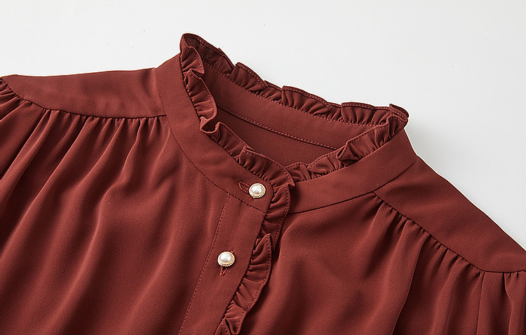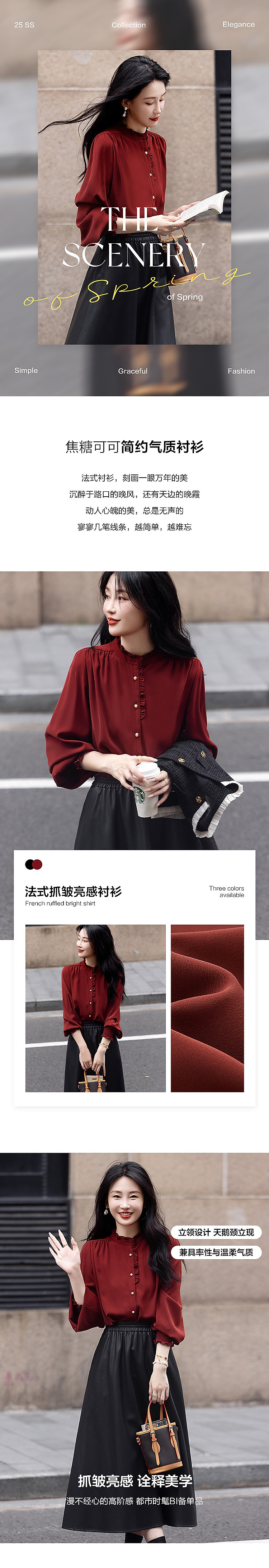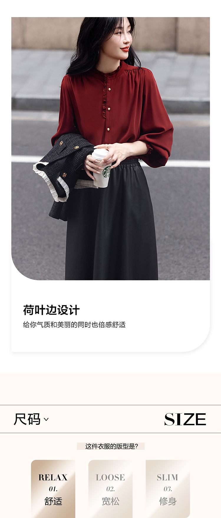 商品名称:【抓皱亮感衬衫】春秋法式女人味荷叶边立领抽褶气质衬衣女装上衣 127297