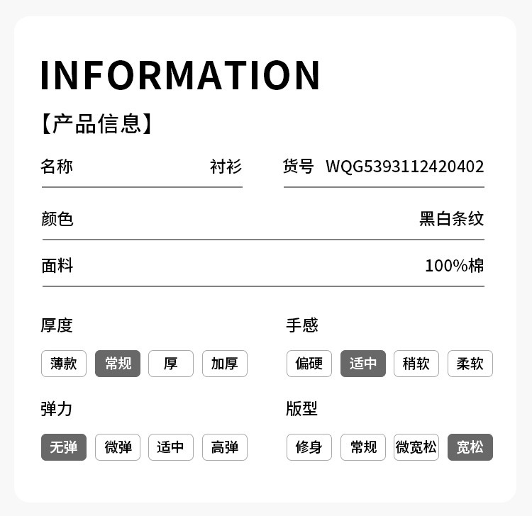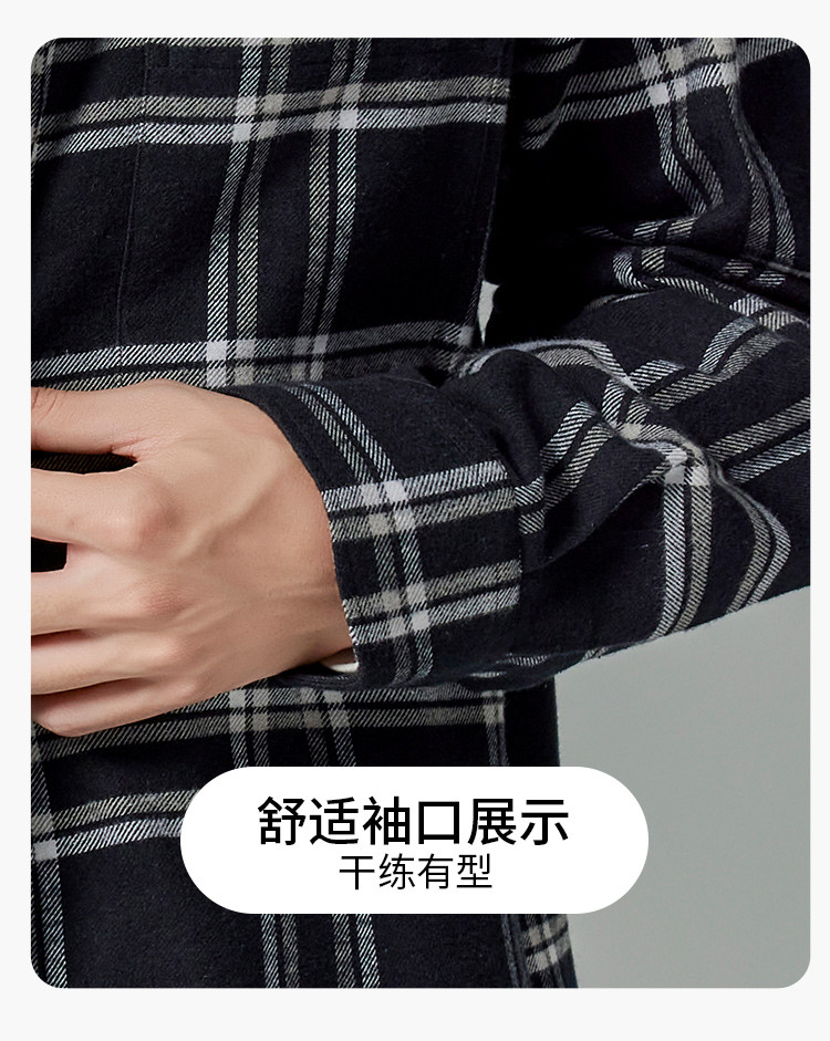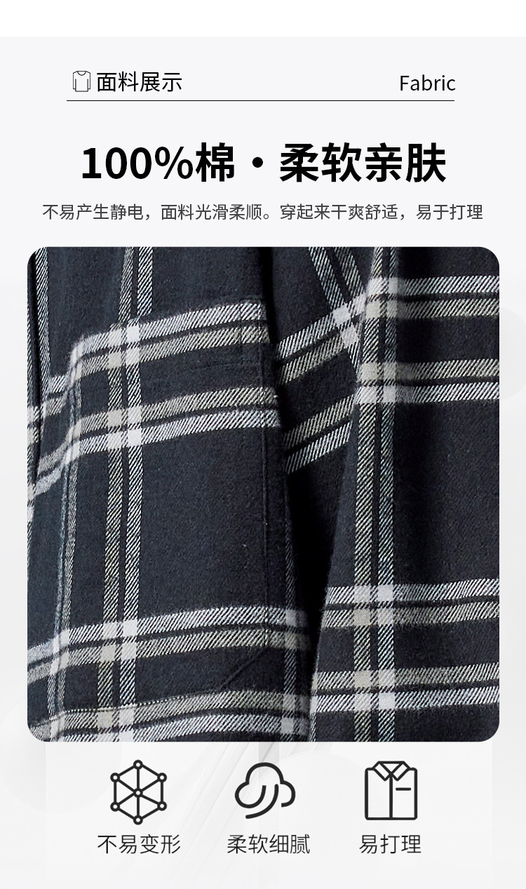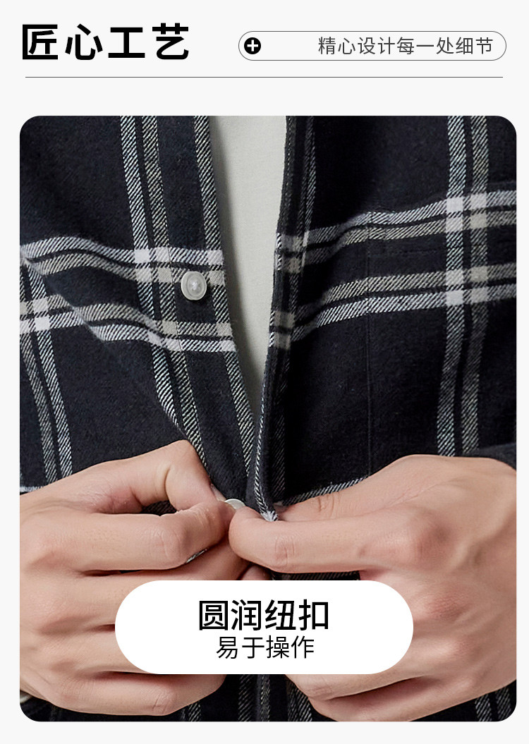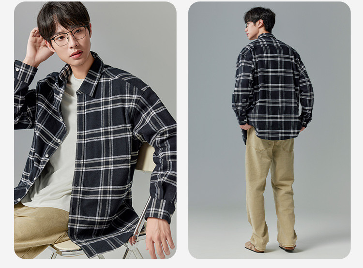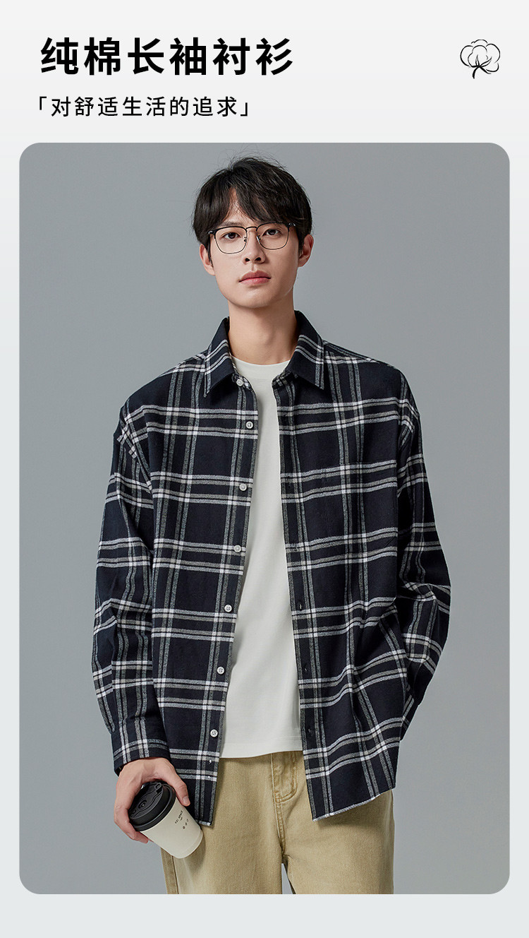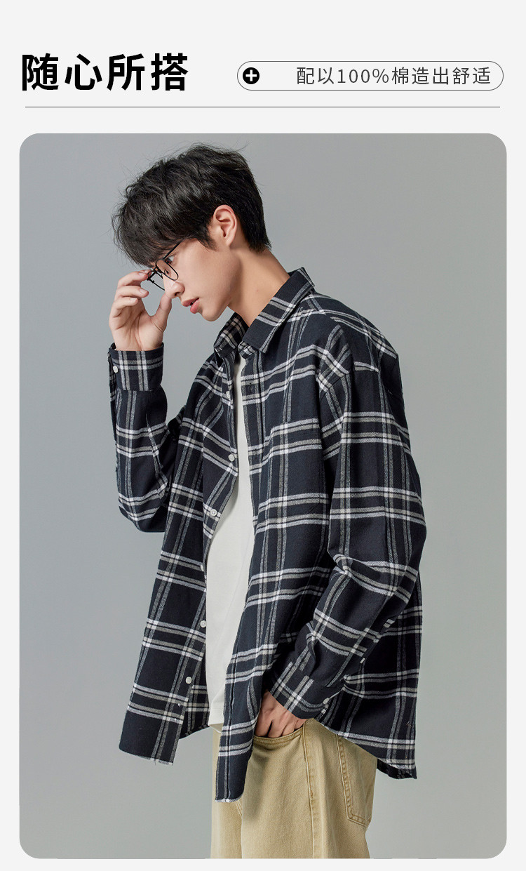 商品名称:【100%棉】复古学院风黑白格子衬衫男宽松文艺少年感男士衬衣 046529