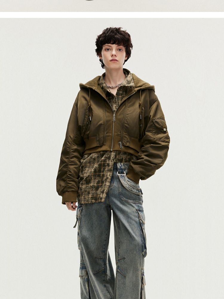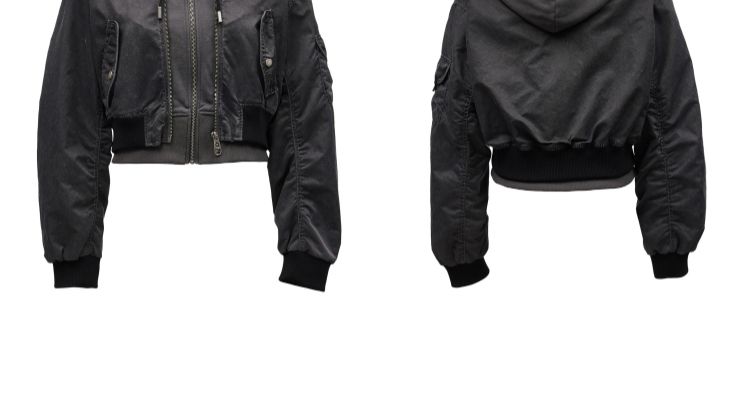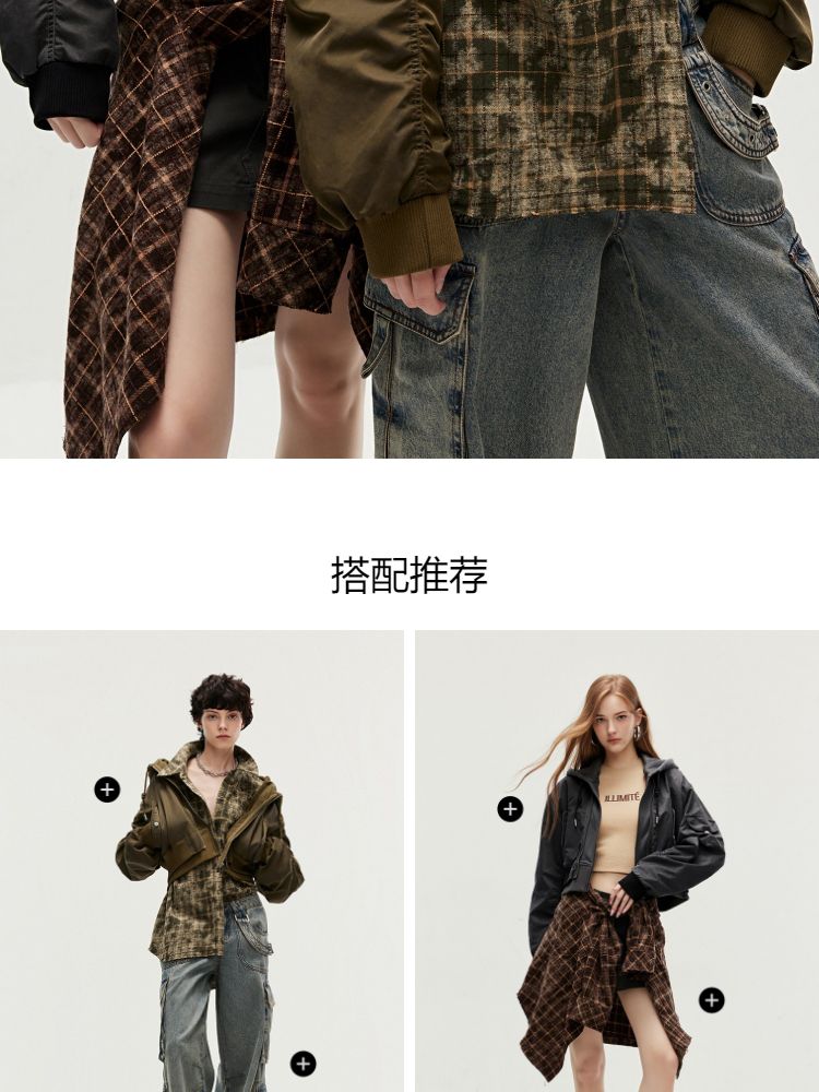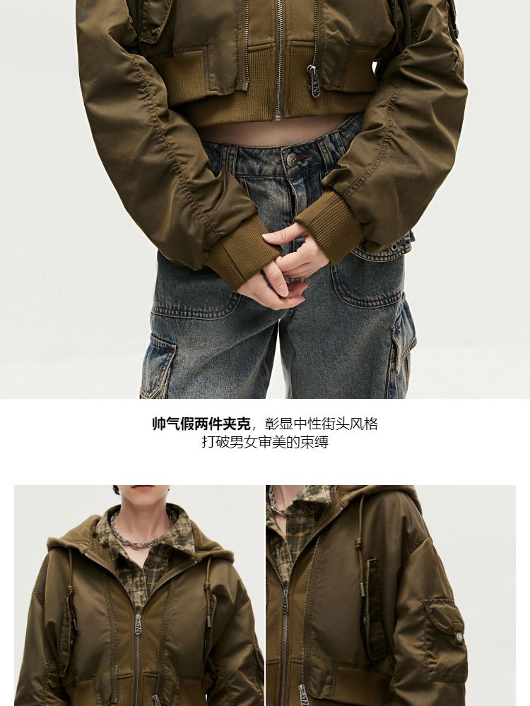 商品名称:【假两件】春季街头风假两件螺纹拉链连帽外套女 231130