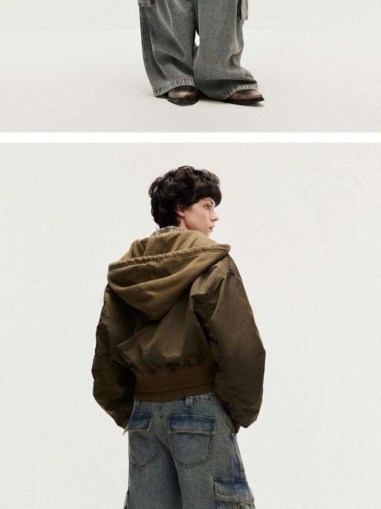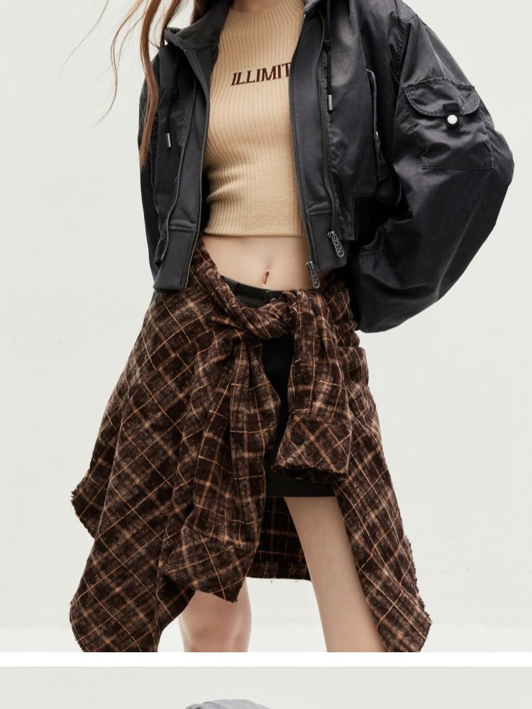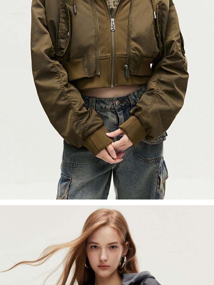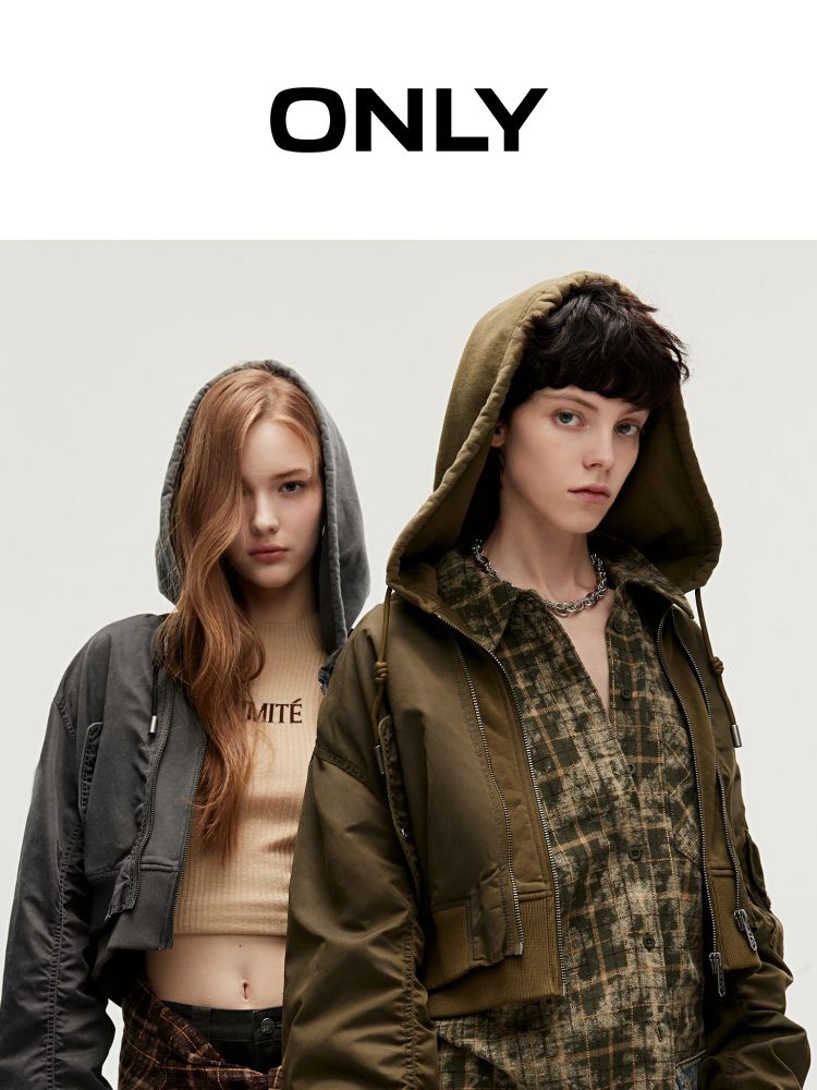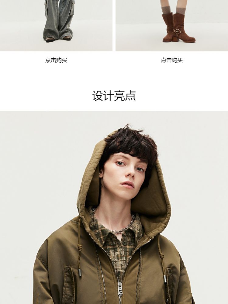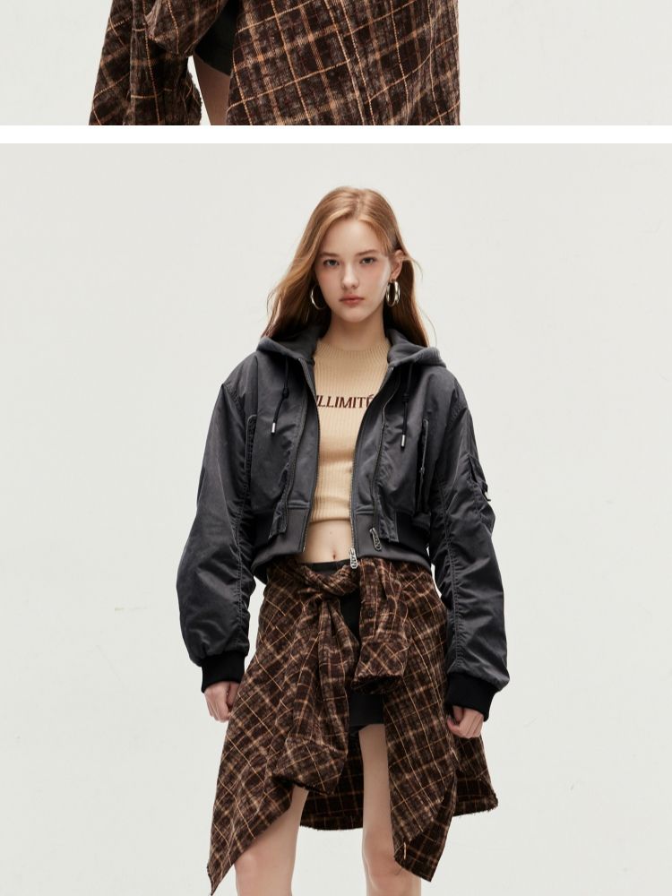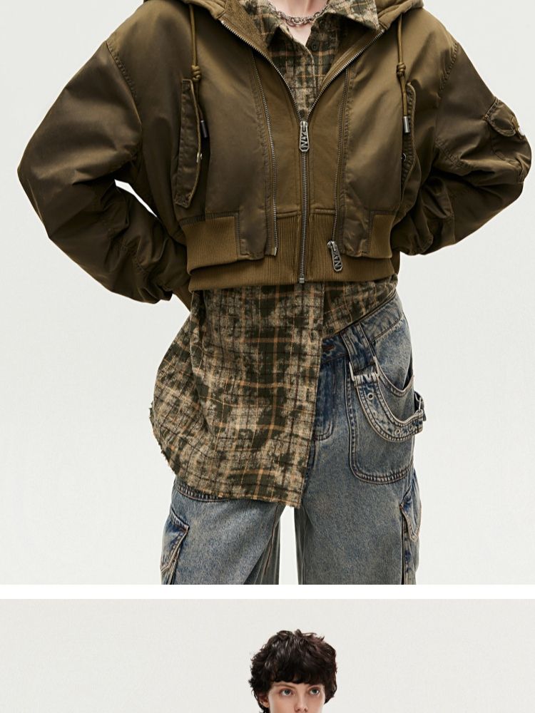 【假两件】春季街头风假两件螺纹拉链连帽外套女 231130
