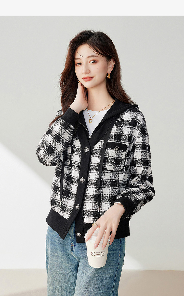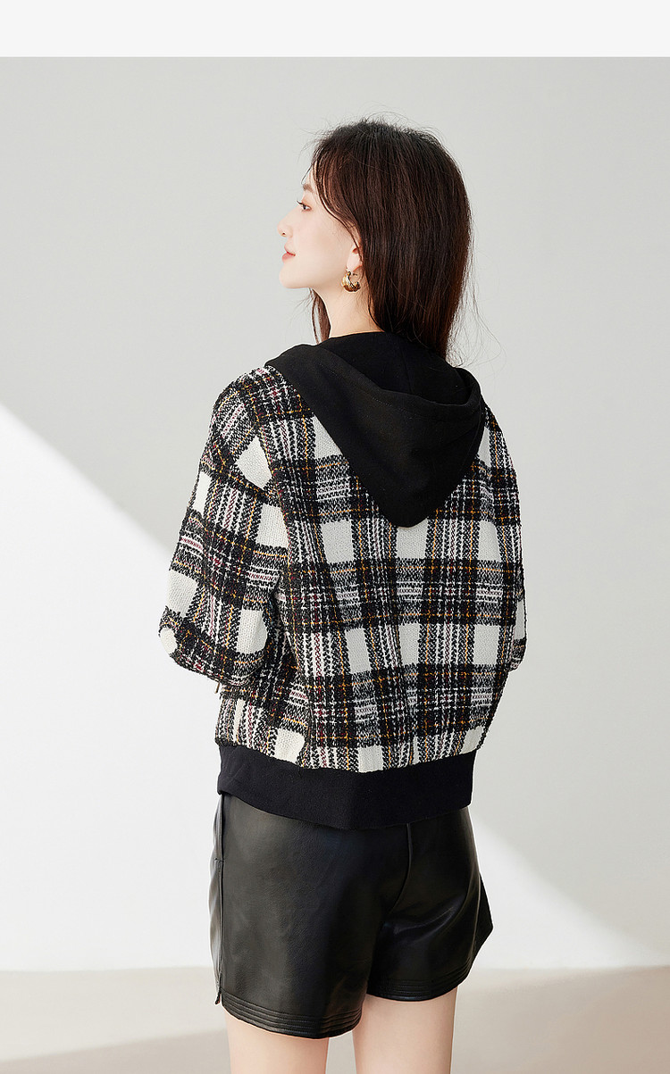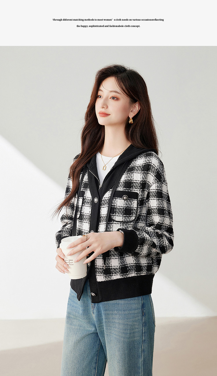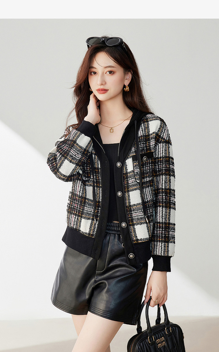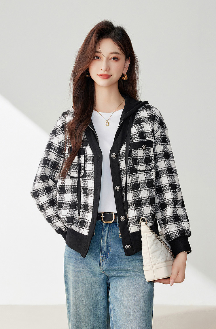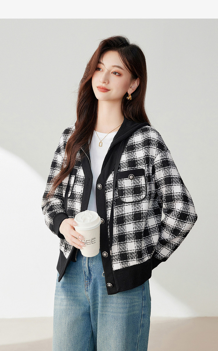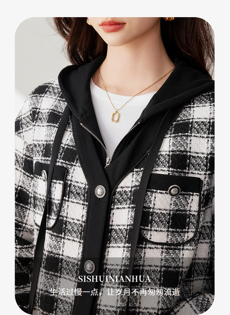 商品名称:双面毛呢格子假两件外套女时尚小个子短款上衣 590680