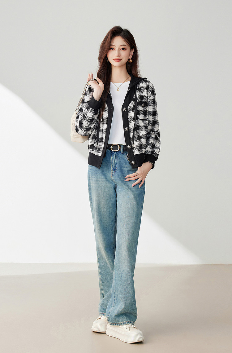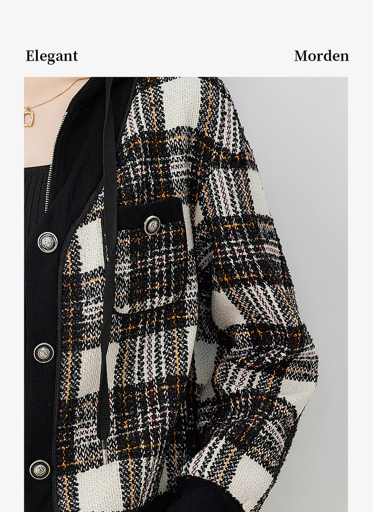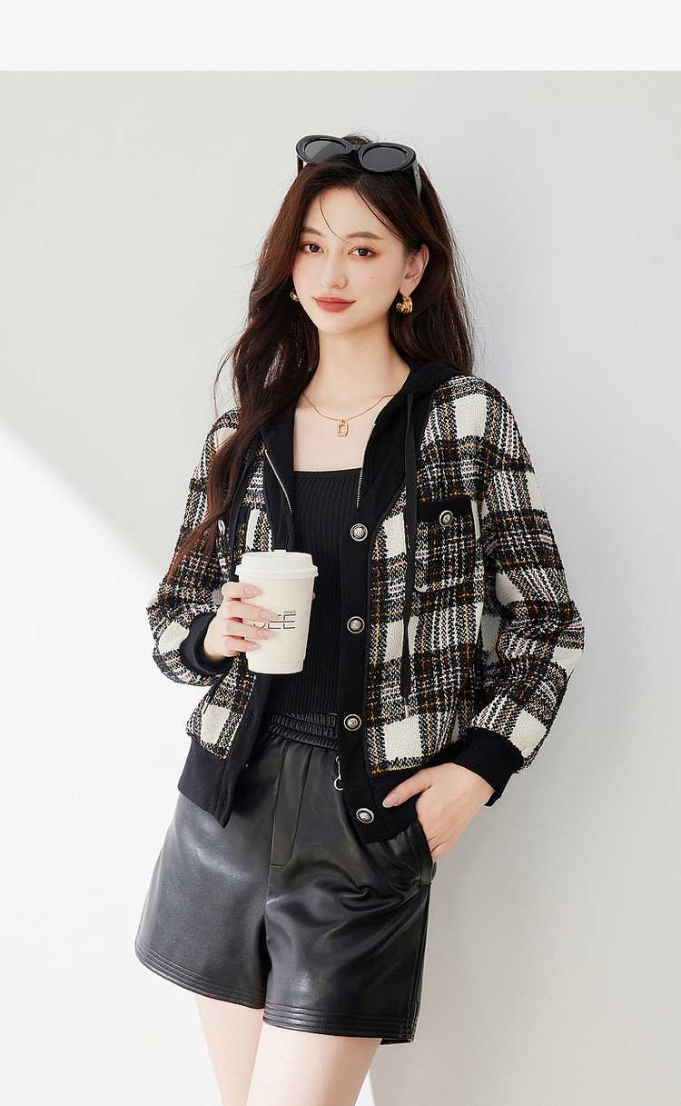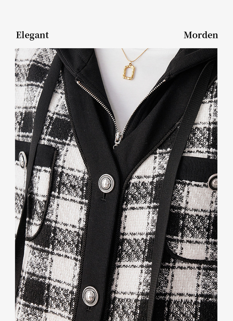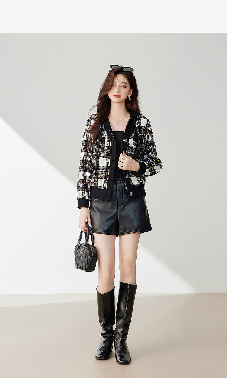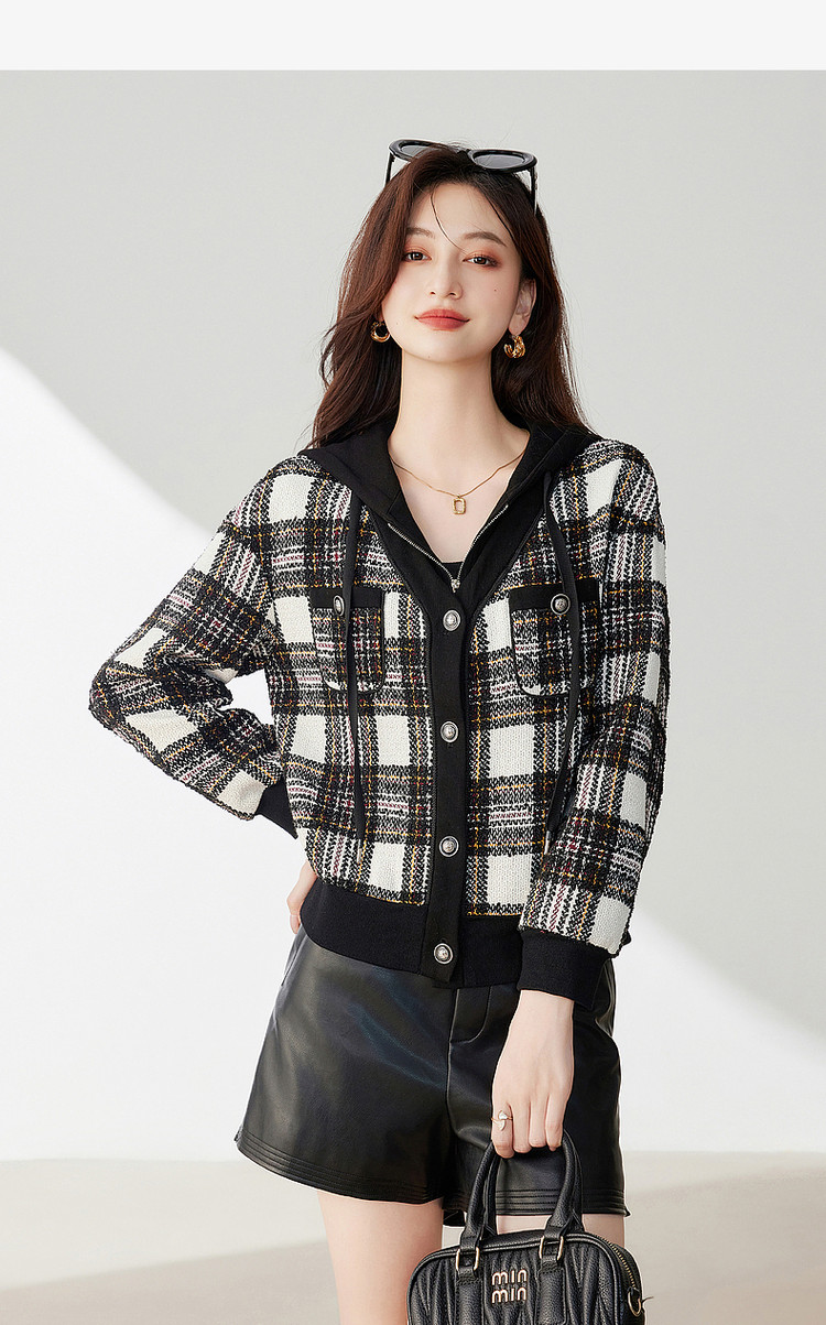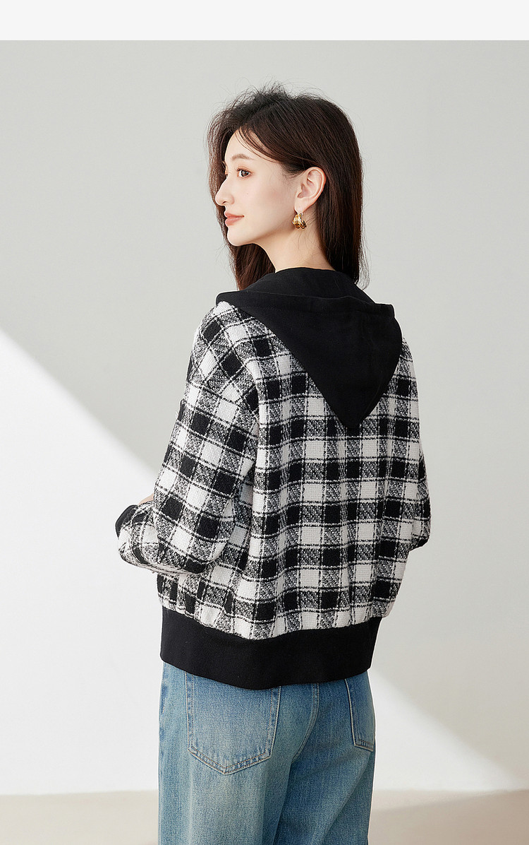 商品名称:双面毛呢格子假两件外套女时尚小个子短款上衣 590680