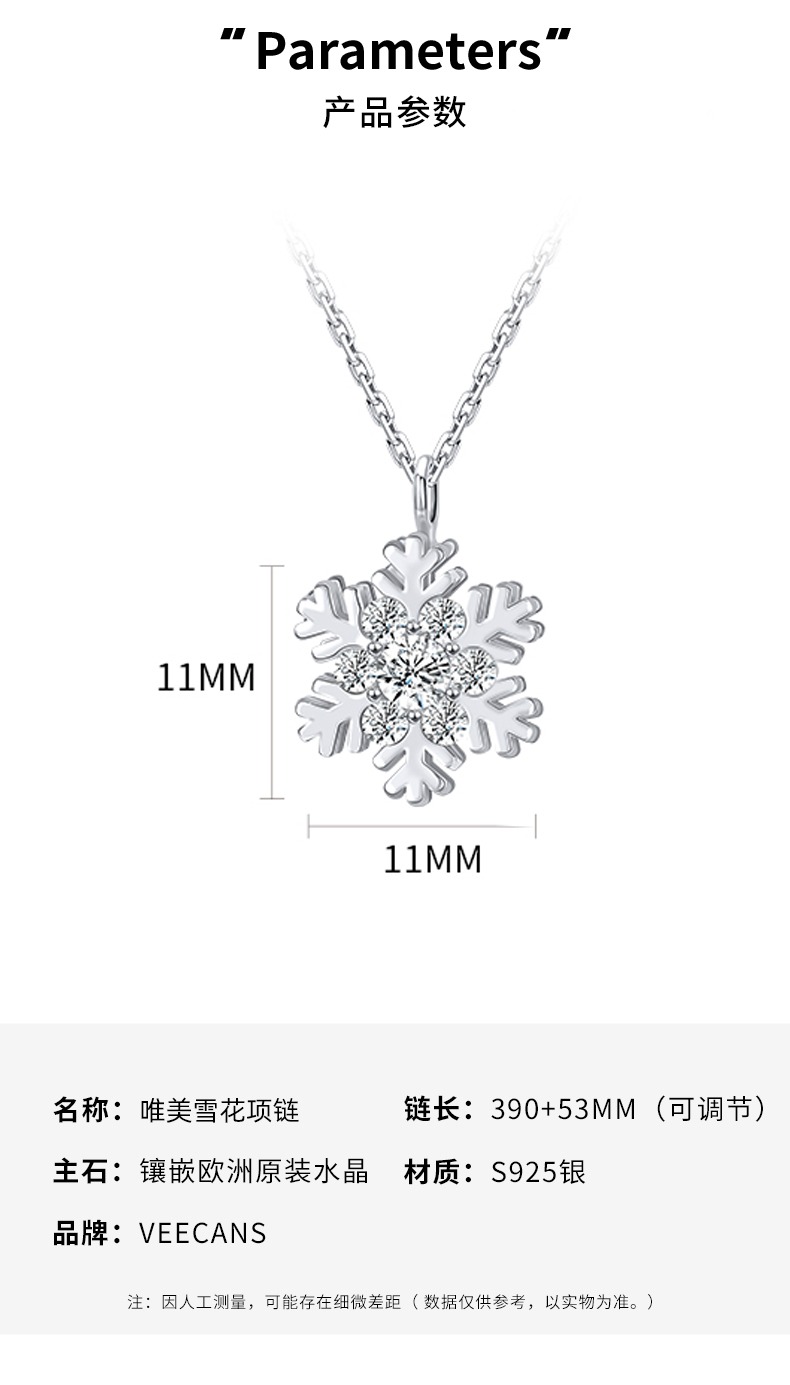 商品名称:veecans唯美雪花项链女纯银轻奢小众设计高级带吊坠送情人节礼物