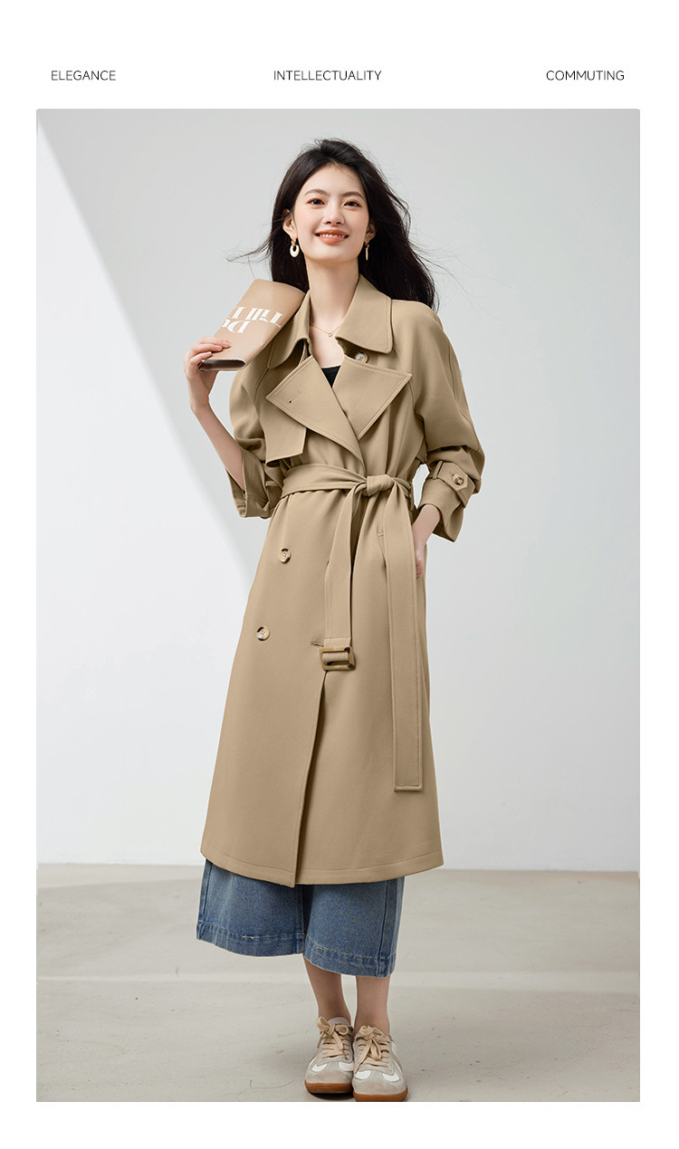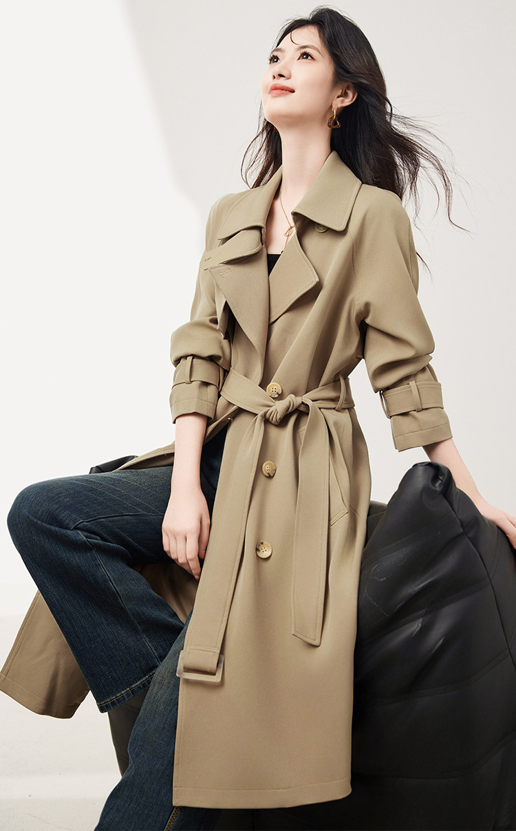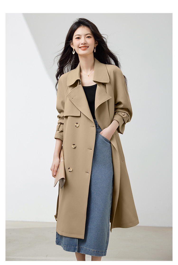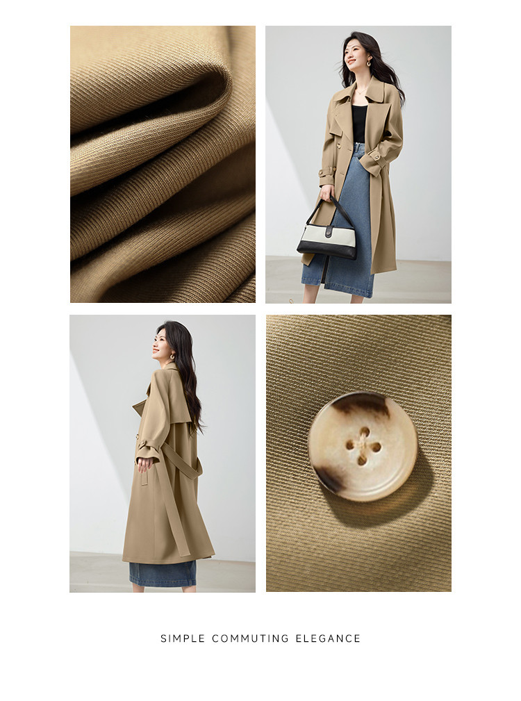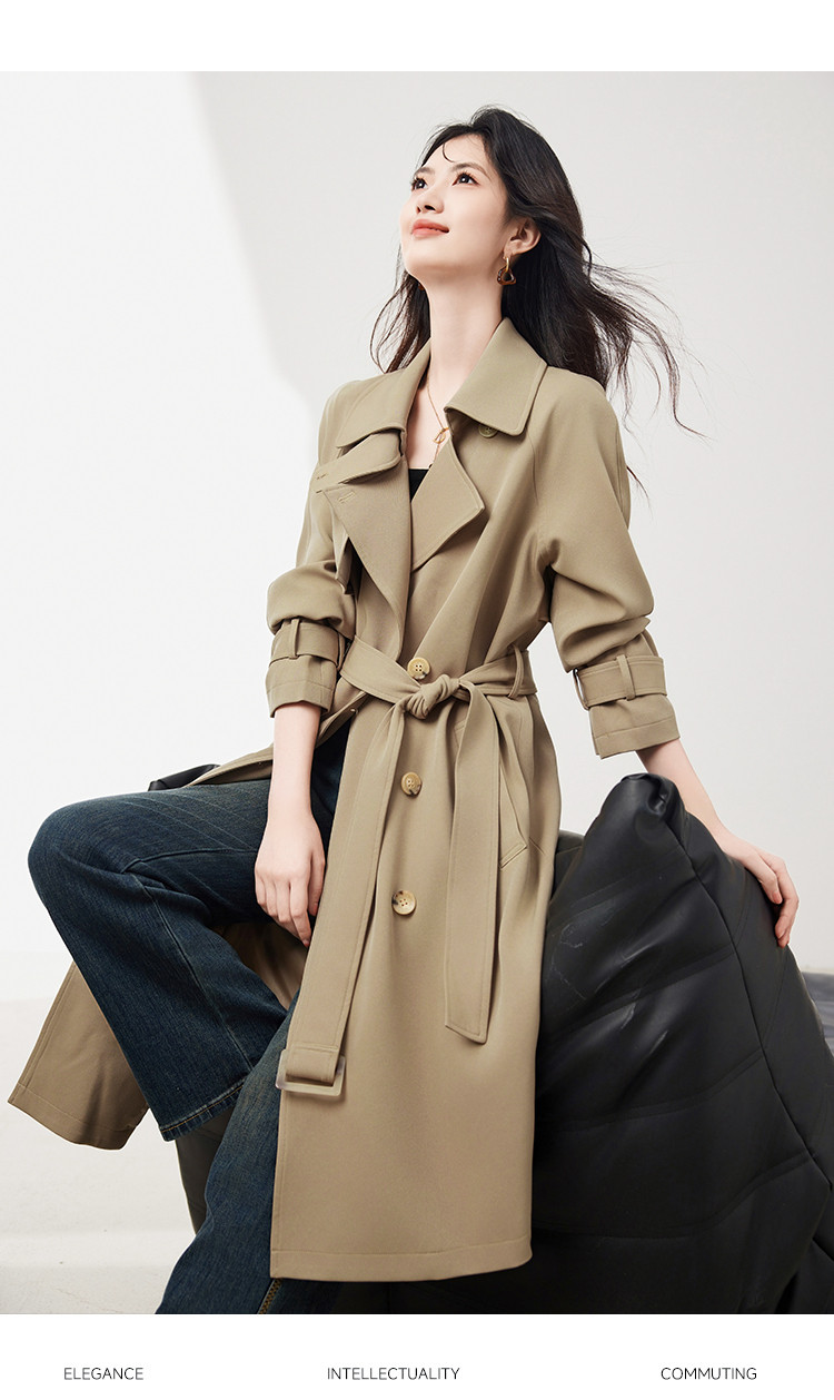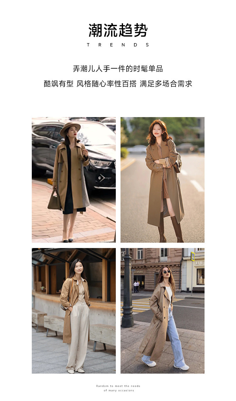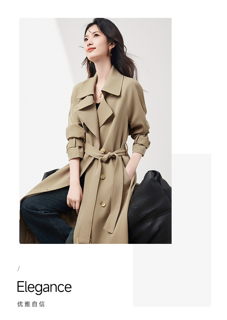 商品名称:风衣外套女2025春秋季新款高级感时尚气质百搭通勤中长款大衣 749656