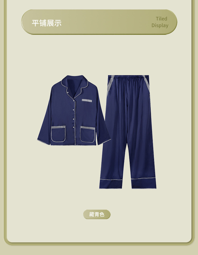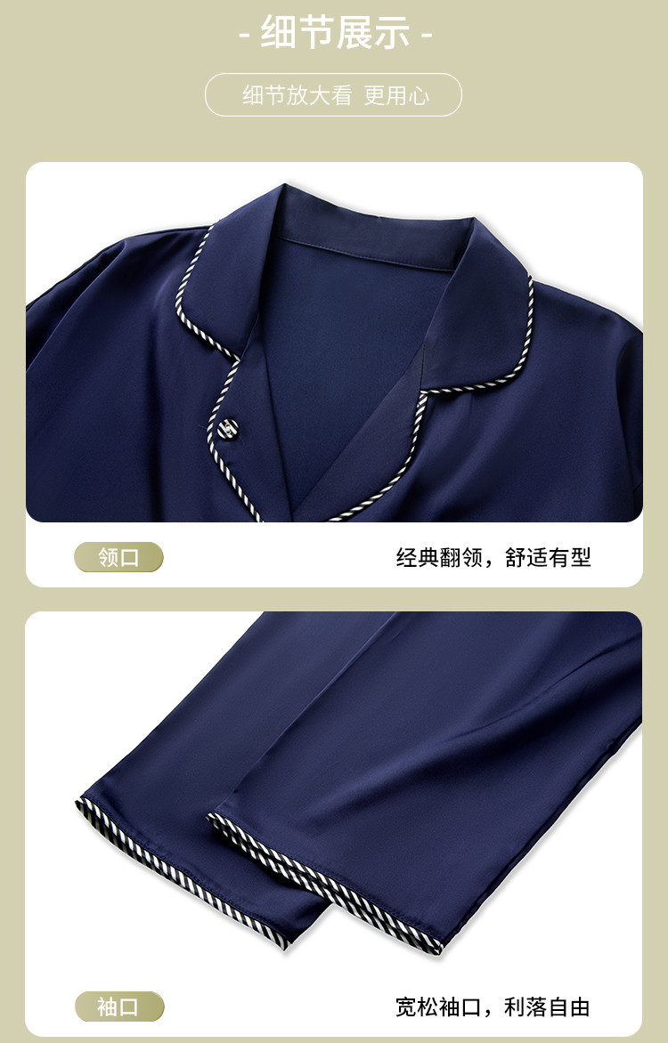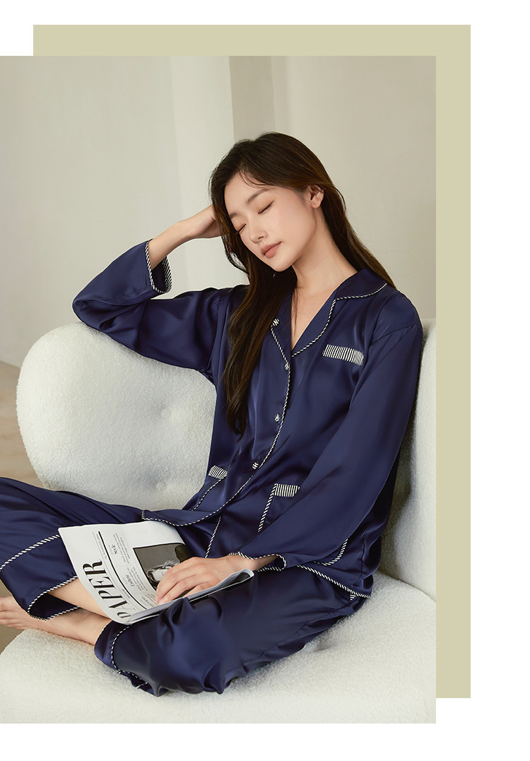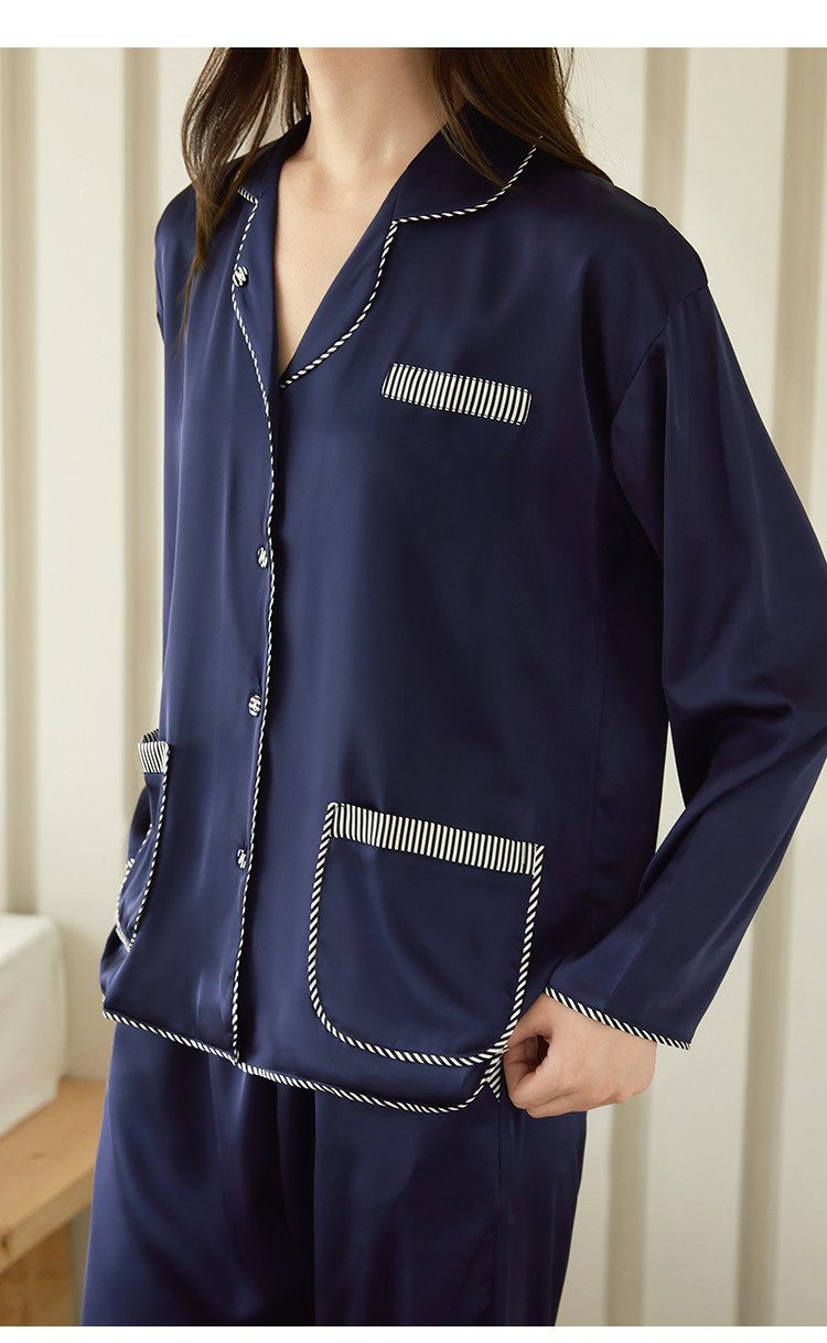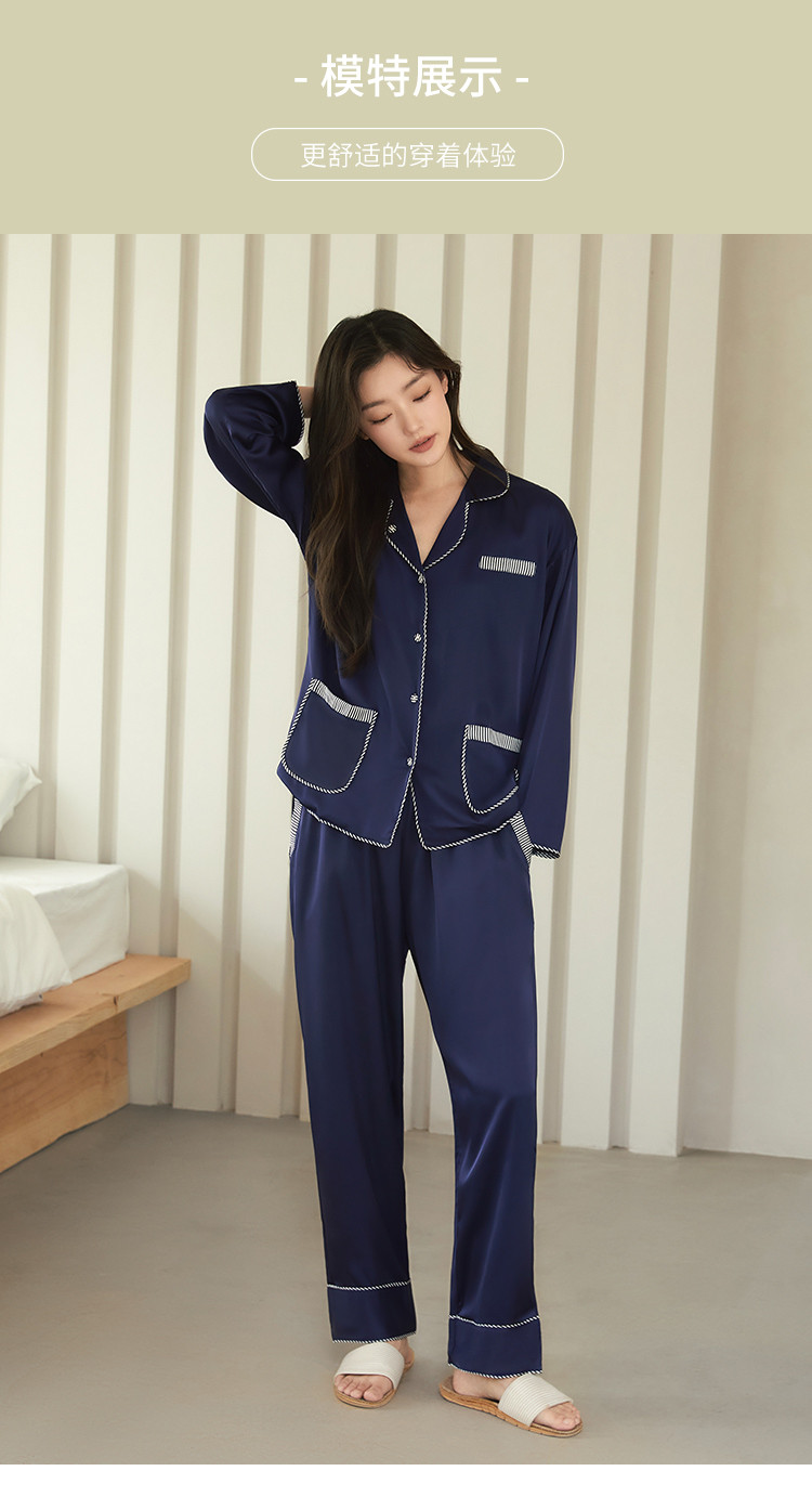 商品名称:【撞色条纹冰雪丝】亲肤舒适居家女式家居服春秋长袖翻领睡衣套装 831371