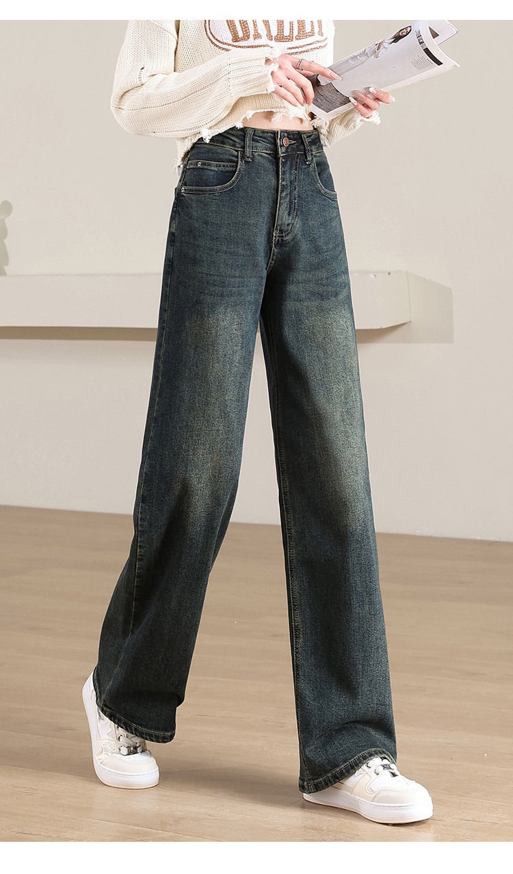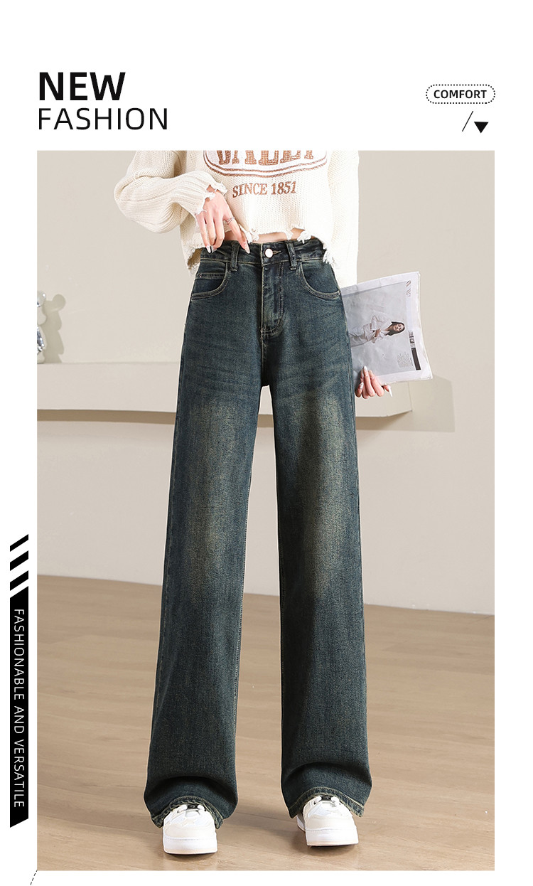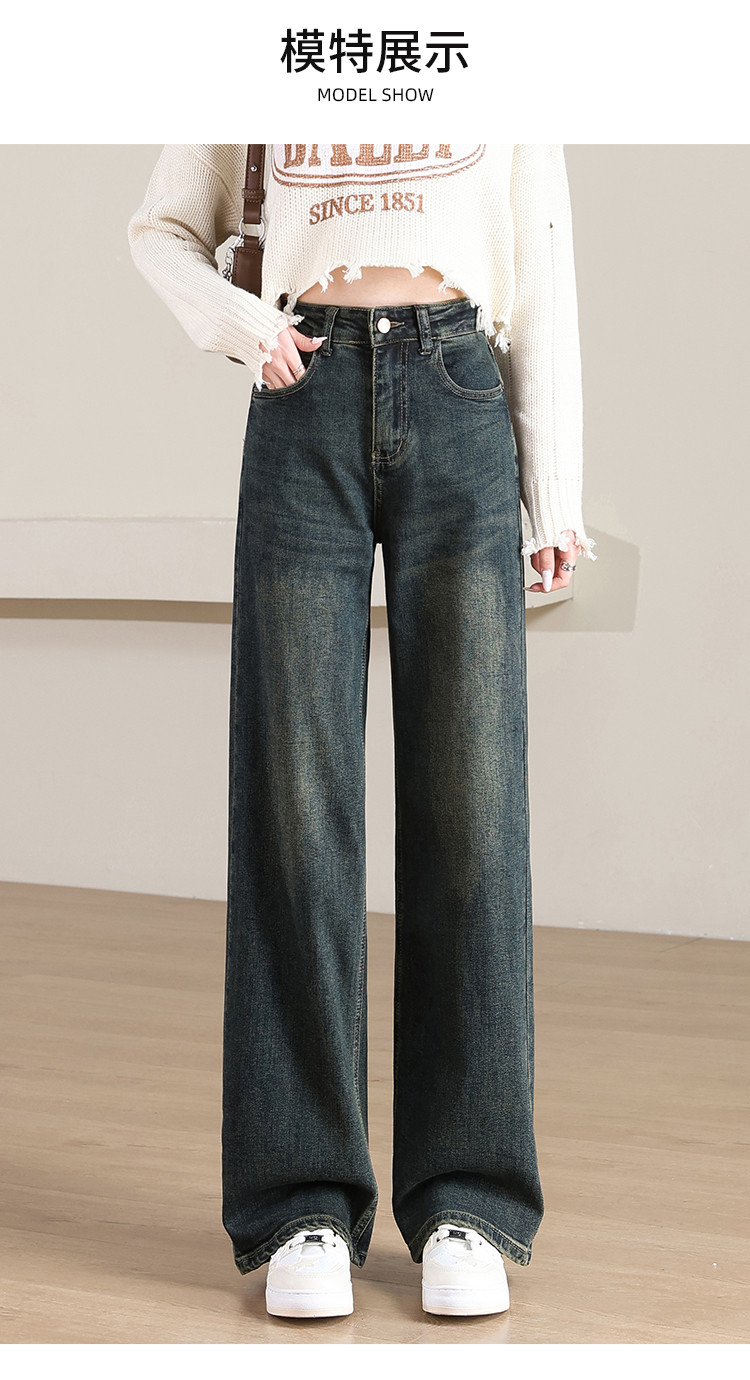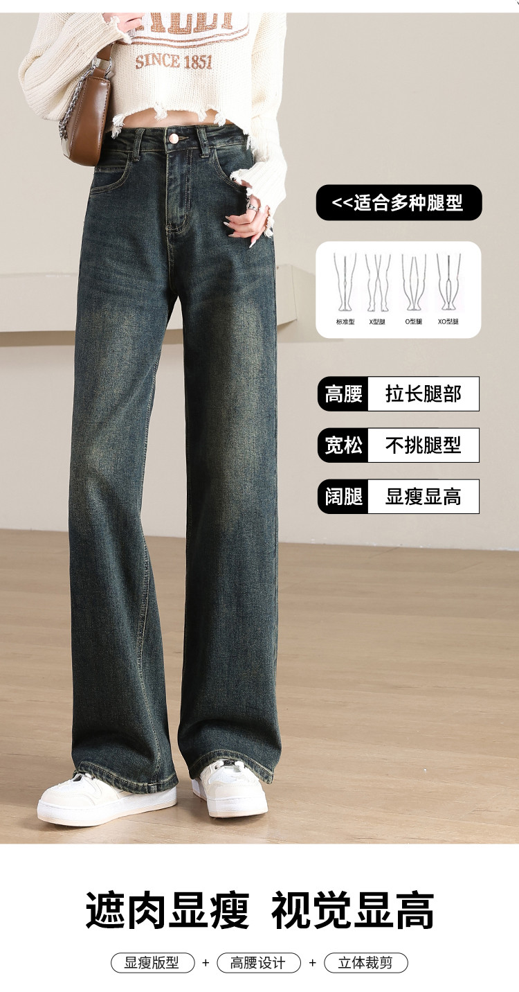 商品名称:【怀旧复古】水洗简约牛仔裤女时尚休闲宽松阔腿裤百搭拖地裤 851416