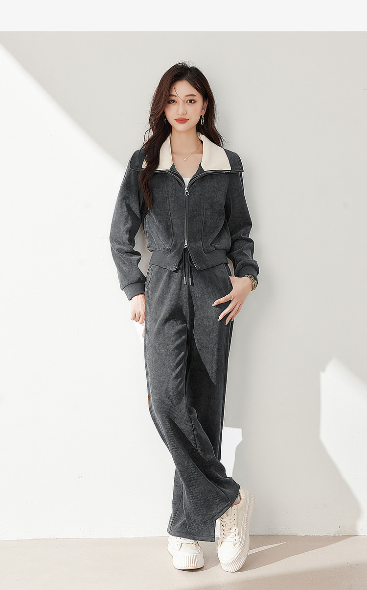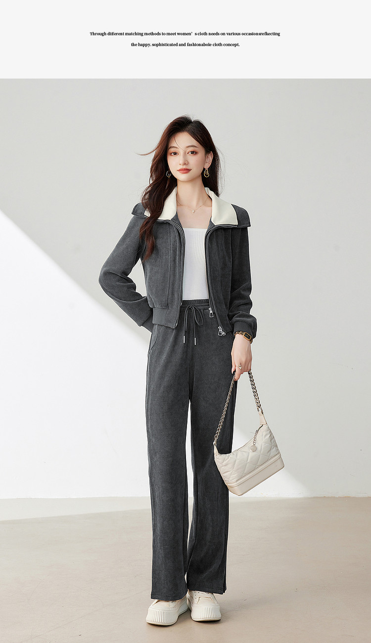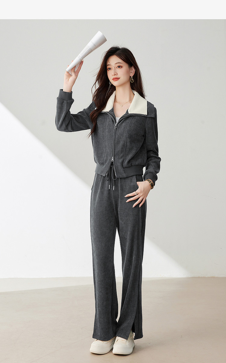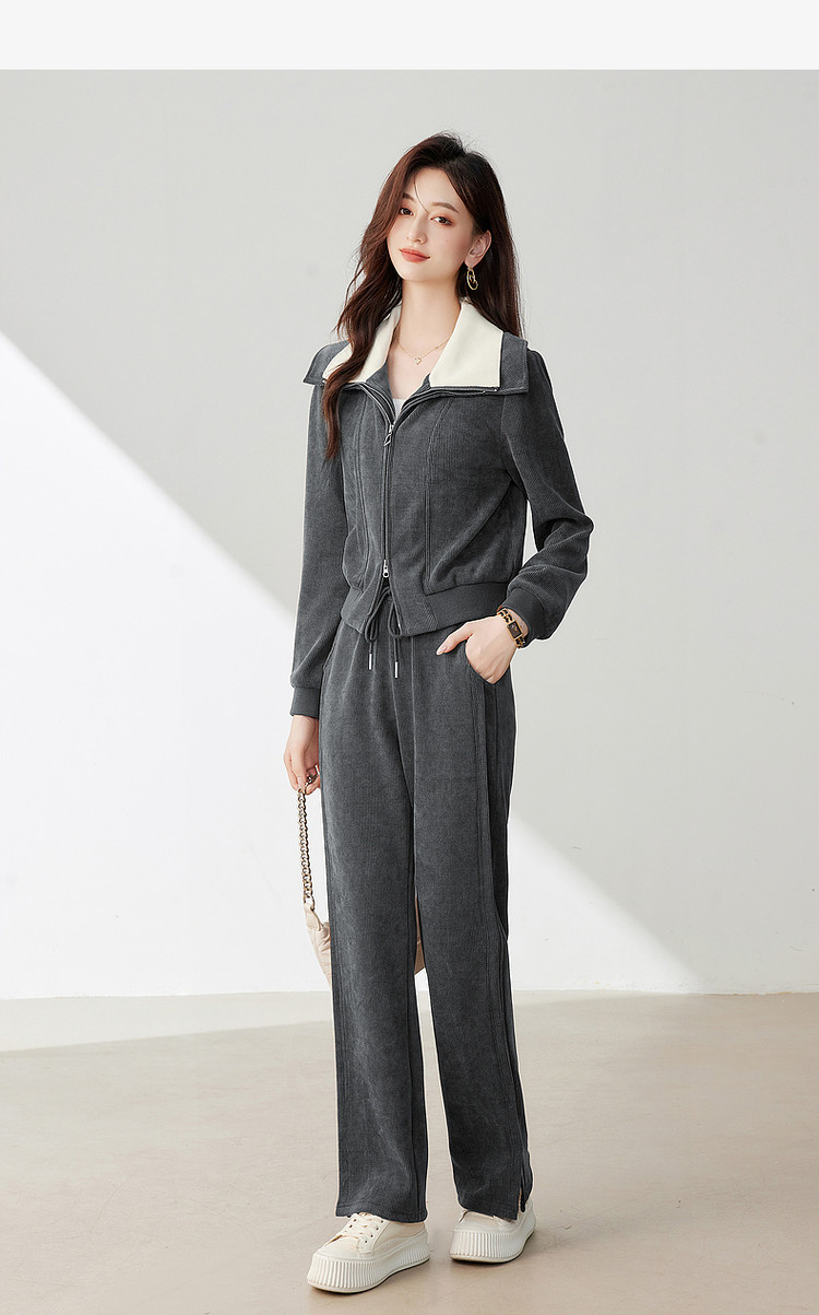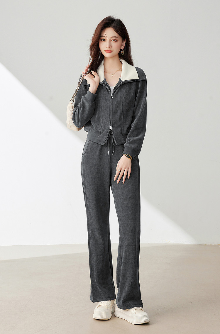 运动休闲时尚套装女盐系轻熟风假两件卫衣阔腿裤两件套 566104