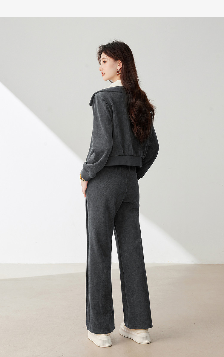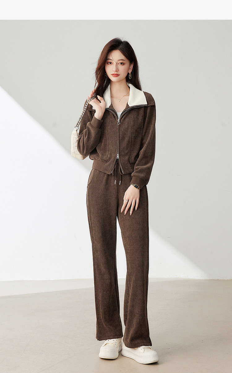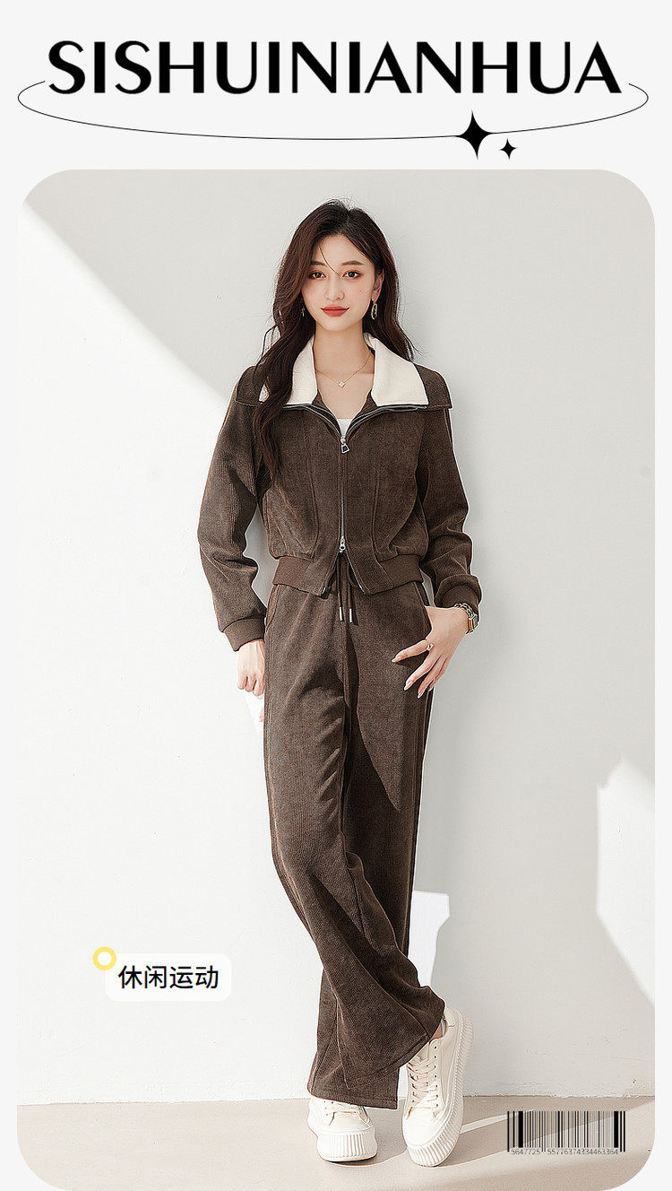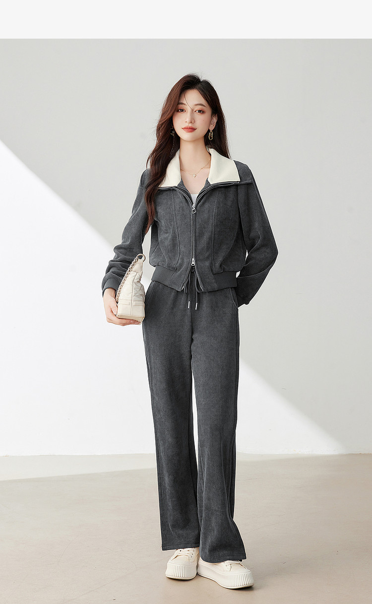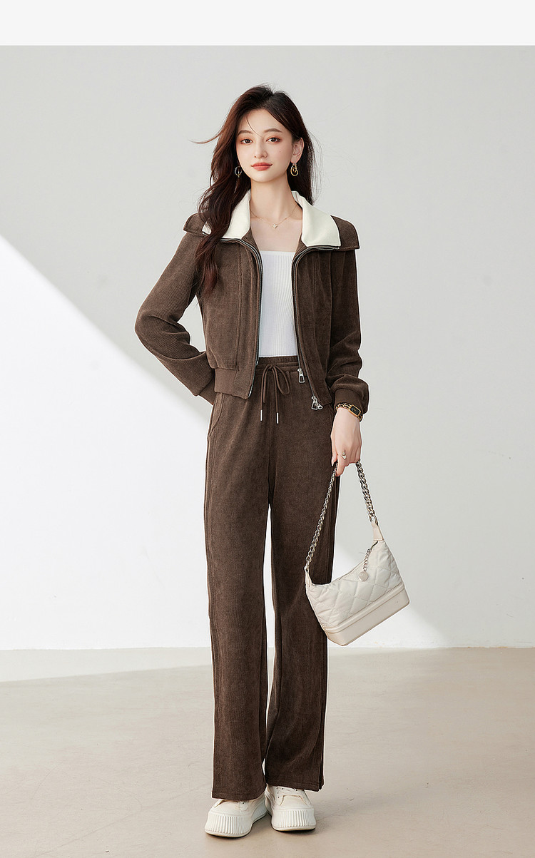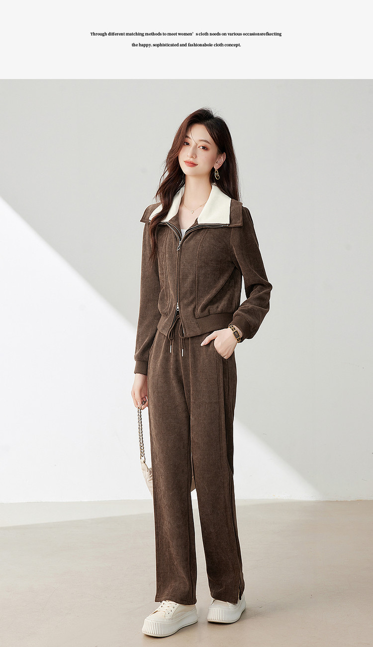 运动休闲时尚套装女盐系轻熟风假两件卫衣阔腿裤两件套 566104